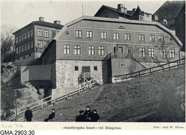 4 roten nr 11 vid Bläsgatan. "Sandbergska huset", efter segel- och kompassmakare Gustaf Sandberg, f. 1791, d. 1854. Donator av "Sandbergska fonden" i Karl Johans församling. Huset borta.