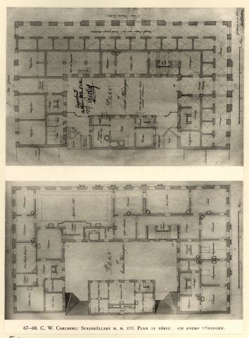 C.W. Carlberg: Stadskällare m.m. 1777 (fig. 67-68). Plan av första och andra våningen.