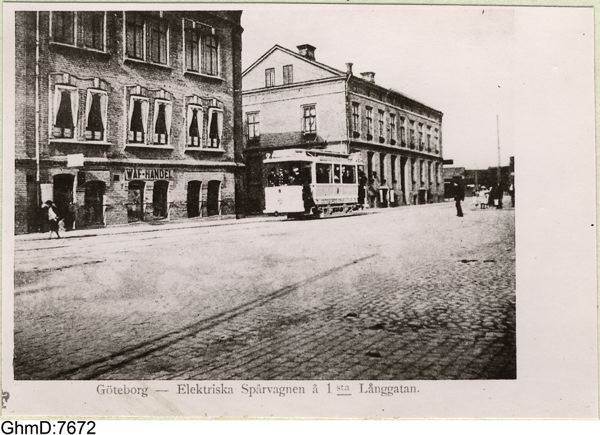 Parti av Första Långgatan sett mot öster. Från vänster nr 27 (Stadens 11 rote, nr 65-71) och 25 (Stdens 11 rote, nr 64). Foto av vykort, troligen från sekelskiftet 1900.