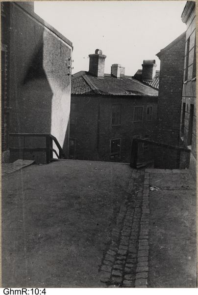 Skräddaretrapporna fr. Södra Liden mellan husen 14 (t.h.) och Stadens 4 rote, nr 80 (utan gatunummer). I bakgrunden Skräddaregatan 3.