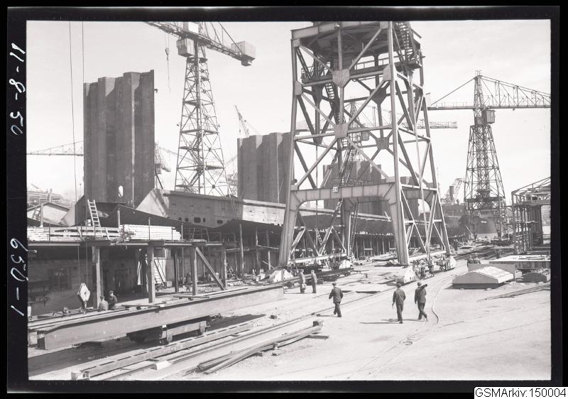Bild av Götaverken 1950-08-11, då M/S Porjus byggdes.