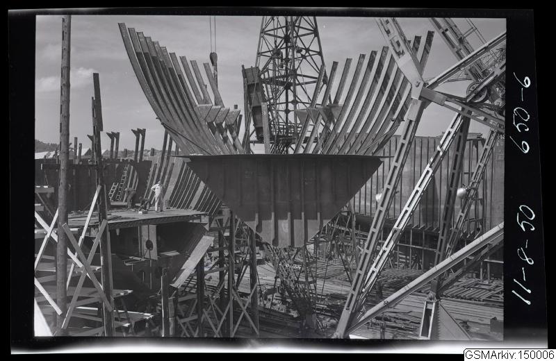 Bild av Götaverken 1950-08-11, då M/S Porjus byggdes.