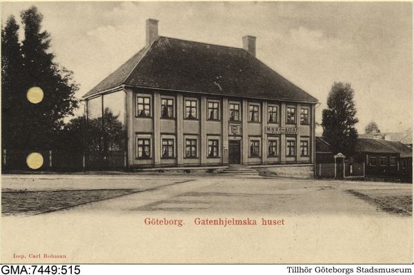 Gathenhielmska huset. Vykort, tryckt i två färger, med sv/v fotografi som förlaga.