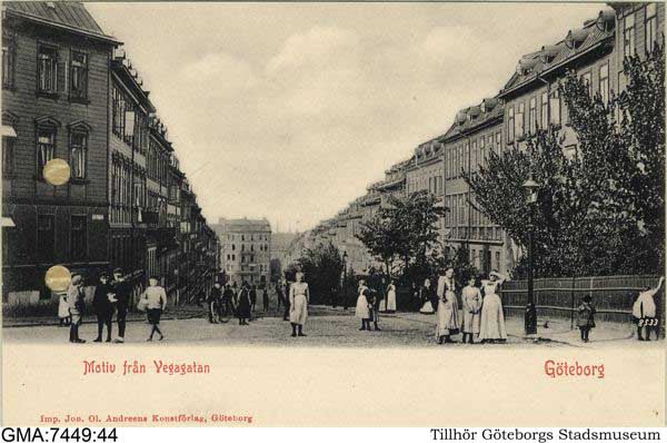 Vegagatan mot norr. Vy tagen från en punkt intill Lilla Vegagatans mynning. Vykort med fotografi som förlaga.
