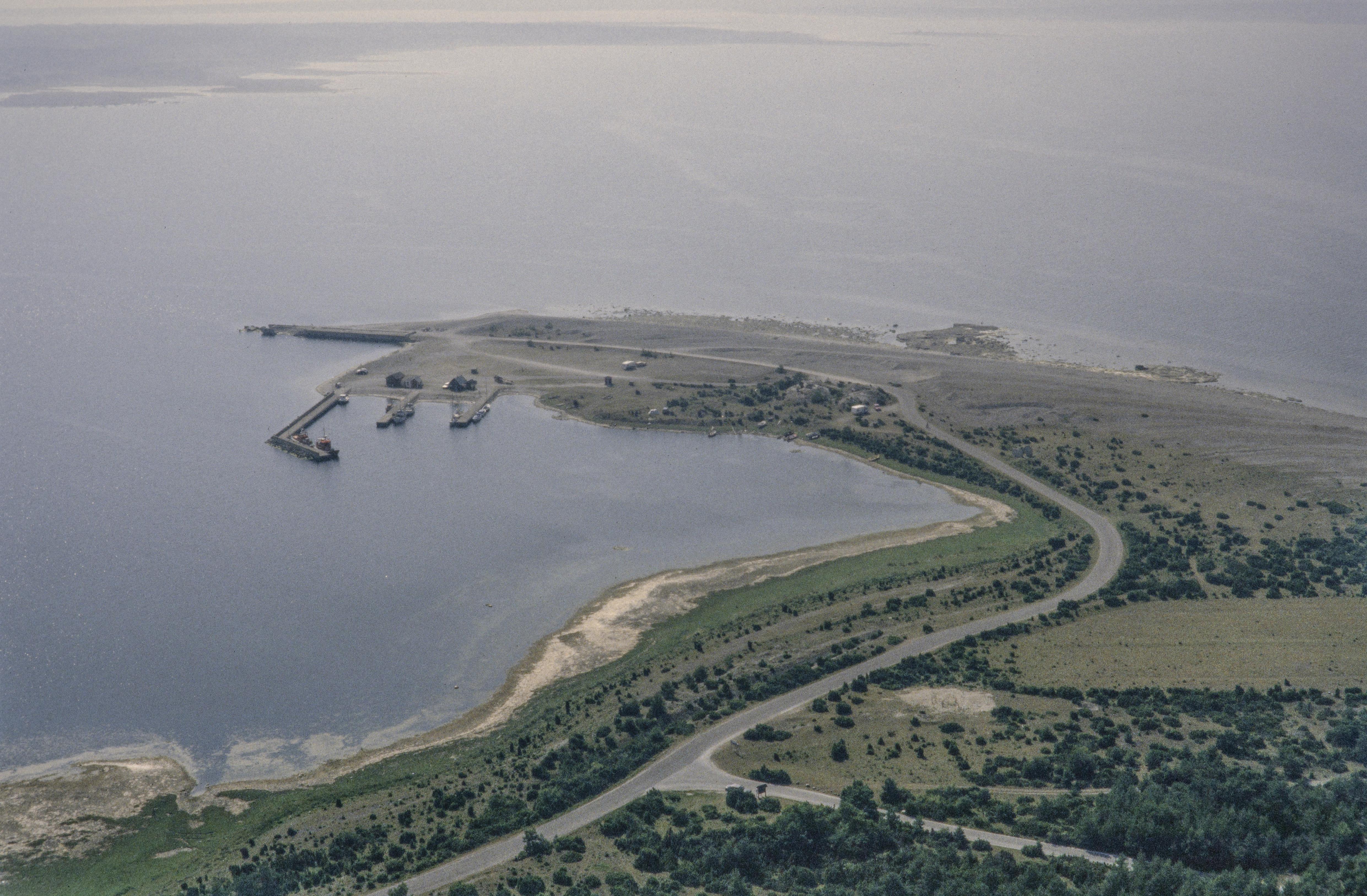 Beskrivning: Lautervik, väster om byn Lauter. Vid bildens mitt halvön Lauterhorn med fiskeläge och kalkindustrilämningar RAÄnr Fårö 228:1-3 m.fl. Bilden är tagen mot (väderstreck): SV