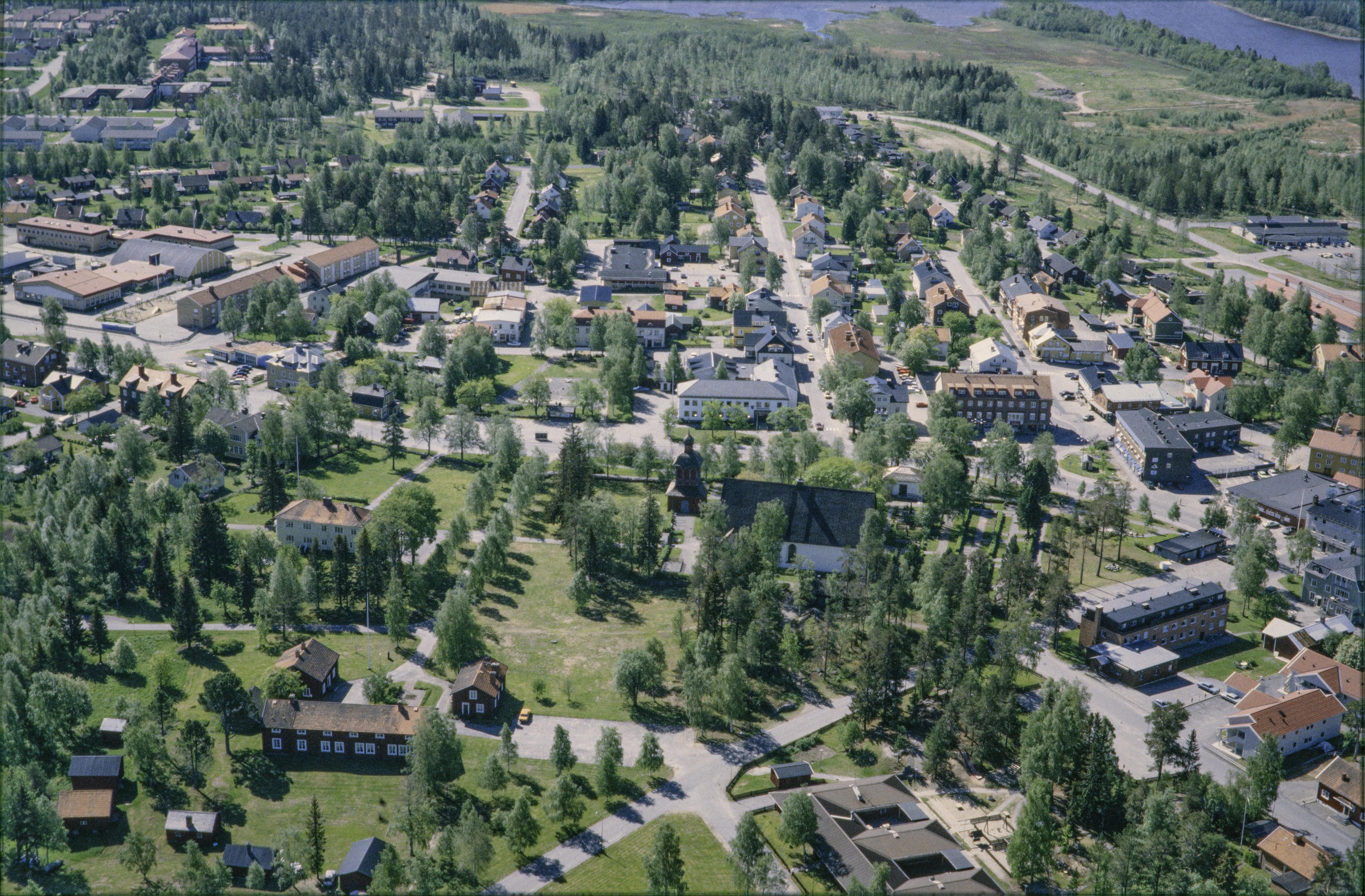 Beskrivning: Nordmalings tätort och kyrkby vid Nordmalingsfjärden. Nordmalings kyrka och prästgård i medeltida tomt RAÄnr Nordmaling 996 vid bildens mitt. Bilden är tagen mot (väderstreck): S