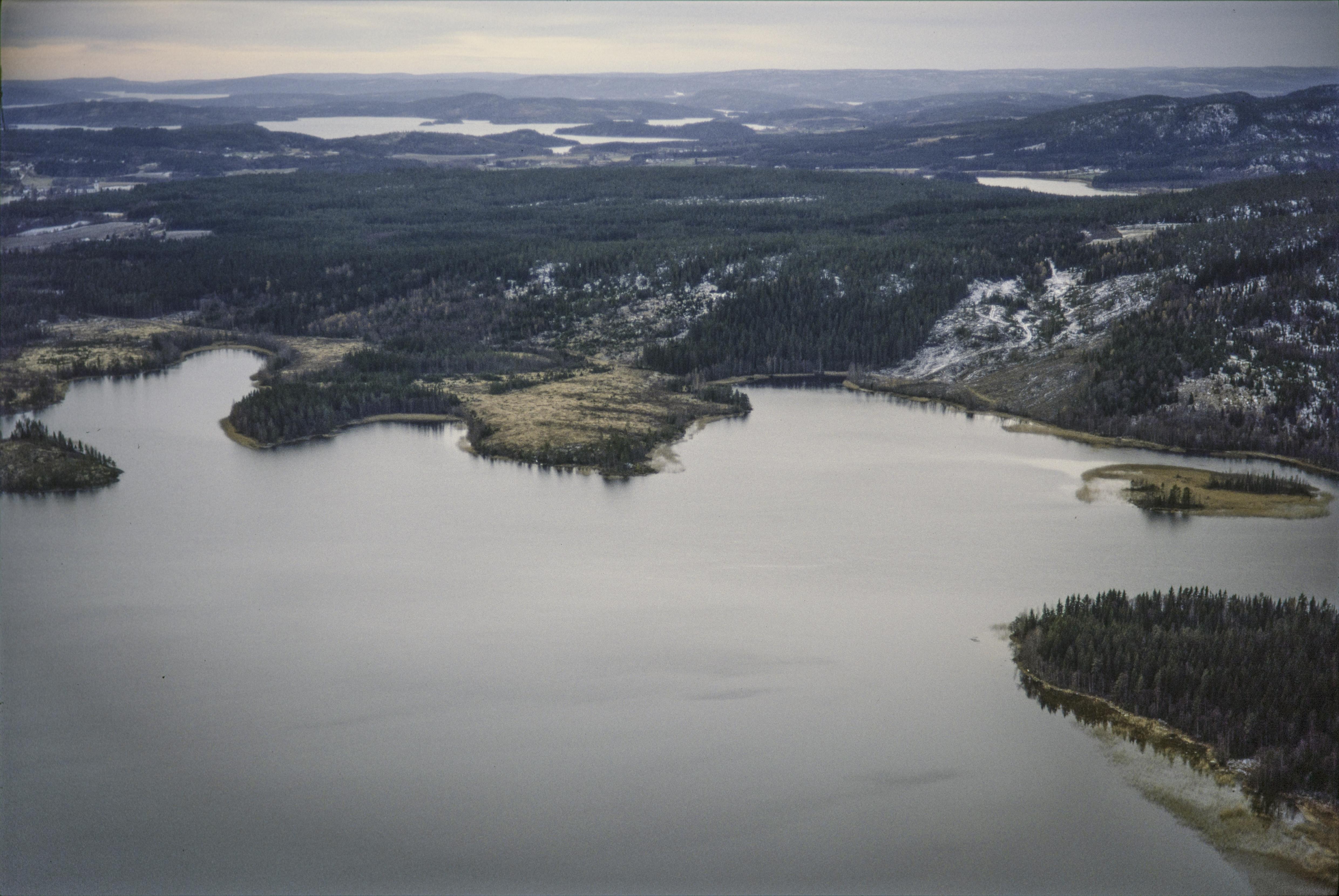 Beskrivning: Höga kustens världsarvområde. Uppe till vänster Lappnäset i Storsjön med boplats, gravplats och fossil åker RAÄnr Nora 5:1-3, 6:1-2 m.fl. I bildens övre del byarna Glommen, Tjärned m.fl. vid sjön Norasundet. Nere till höger Nere till höger Långudden söder om Gallsätter vid gränsen till socknet Skog. Bilden är tagen mot (väderstreck): S