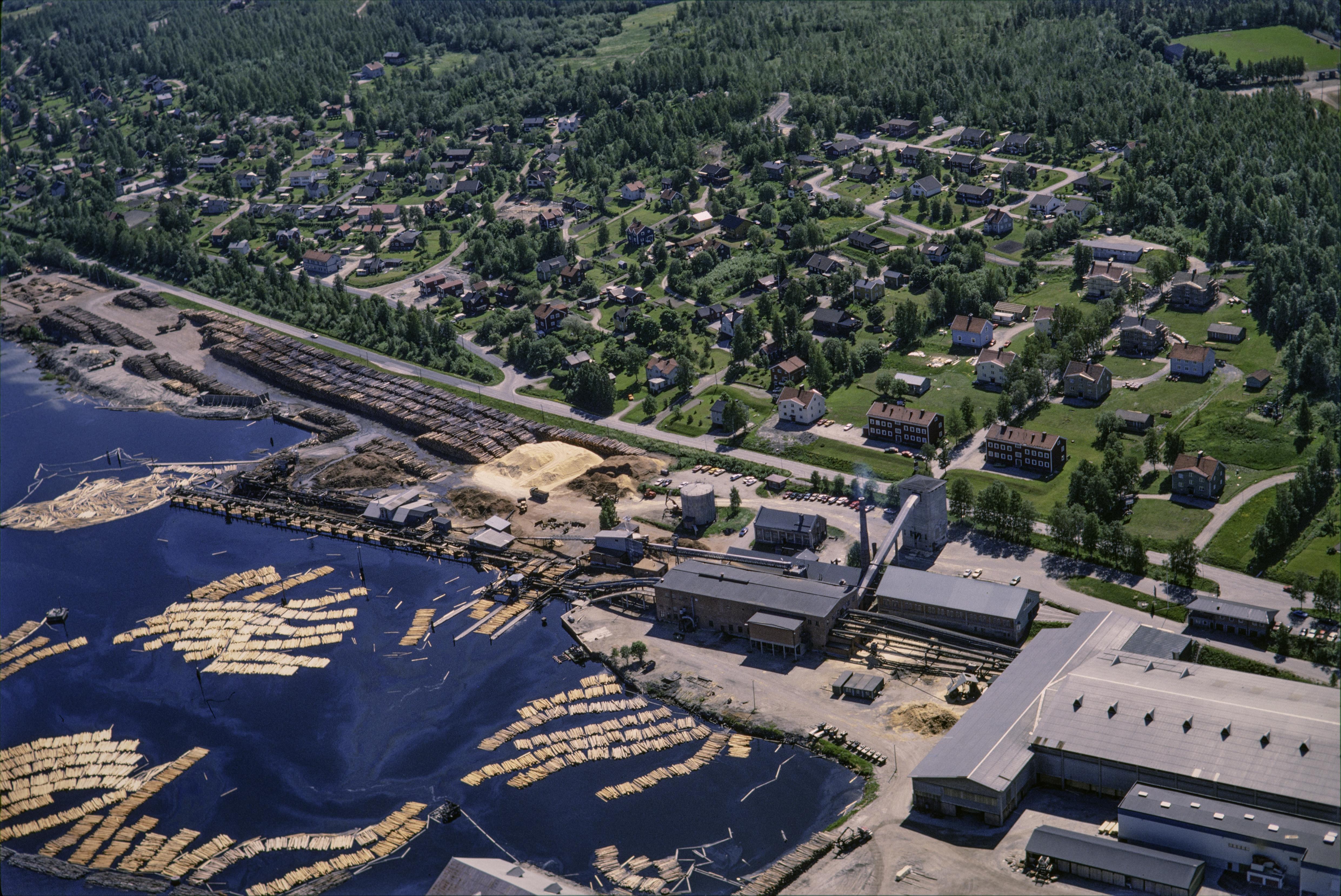 Beskrivning: Höga kustens världsarvsområde. Domsjö sågverkssamhälle vid Örnsköldsviksfjärden. Vid hamnen lastageplats RAÄnr Själevad 190:1. Bilden är tagen mot (väderstreck): SSO