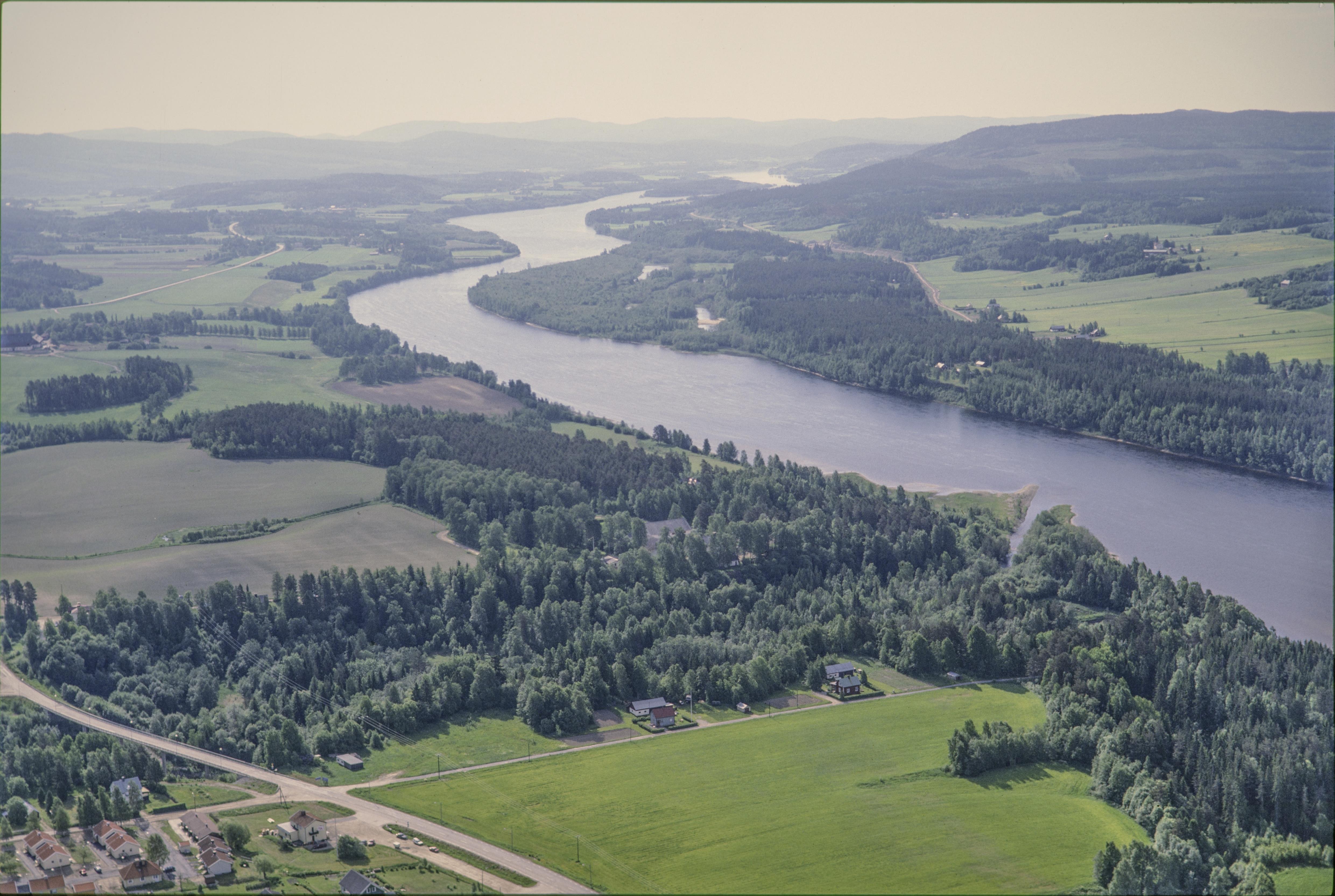 Beskrivning: Ångermanälvens dalgång vid Björkå bruk. Nere till höger Björkåns utlopp i Ångermanälven. Vid bildens mitt skymtas Björkå herrgård bland träden. Vid herrgården gravfält med hög RAÄnr Överlännäs 19:1. Uppe till vänster gravfält RAÄnr Överlännäs 18:1 och 16:1 m.fl. Bilden är tagen mot (väderstreck): SO