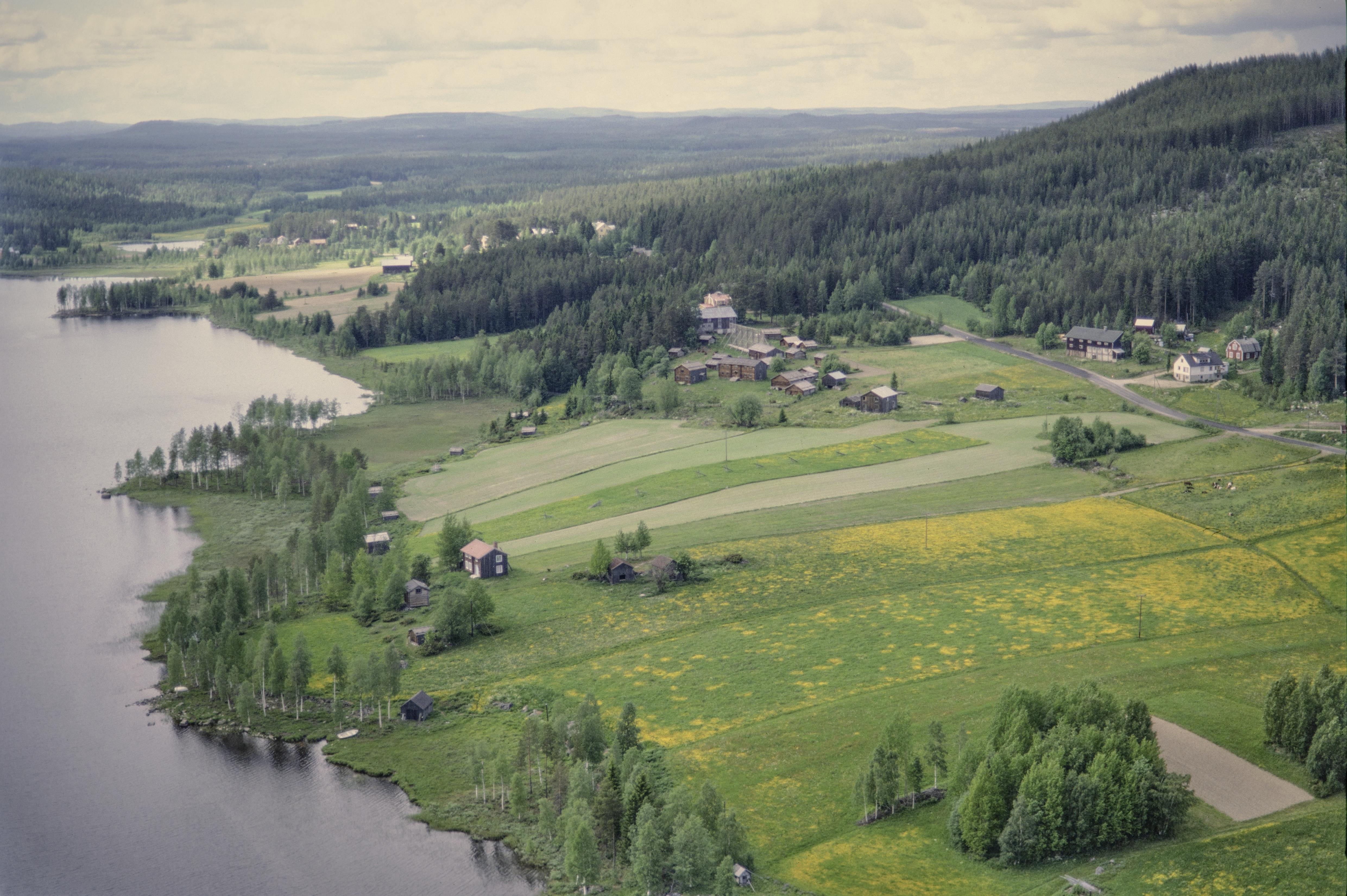 Beskrivning: Naturreservatet Myckelgensjösjön. Över bildens mitt Östalbyn med Gammgården hembygdsgård. I bildens övre del byarna Myckelgensjö och Västalbyn. Bilden är tagen mot (väderstreck): NV