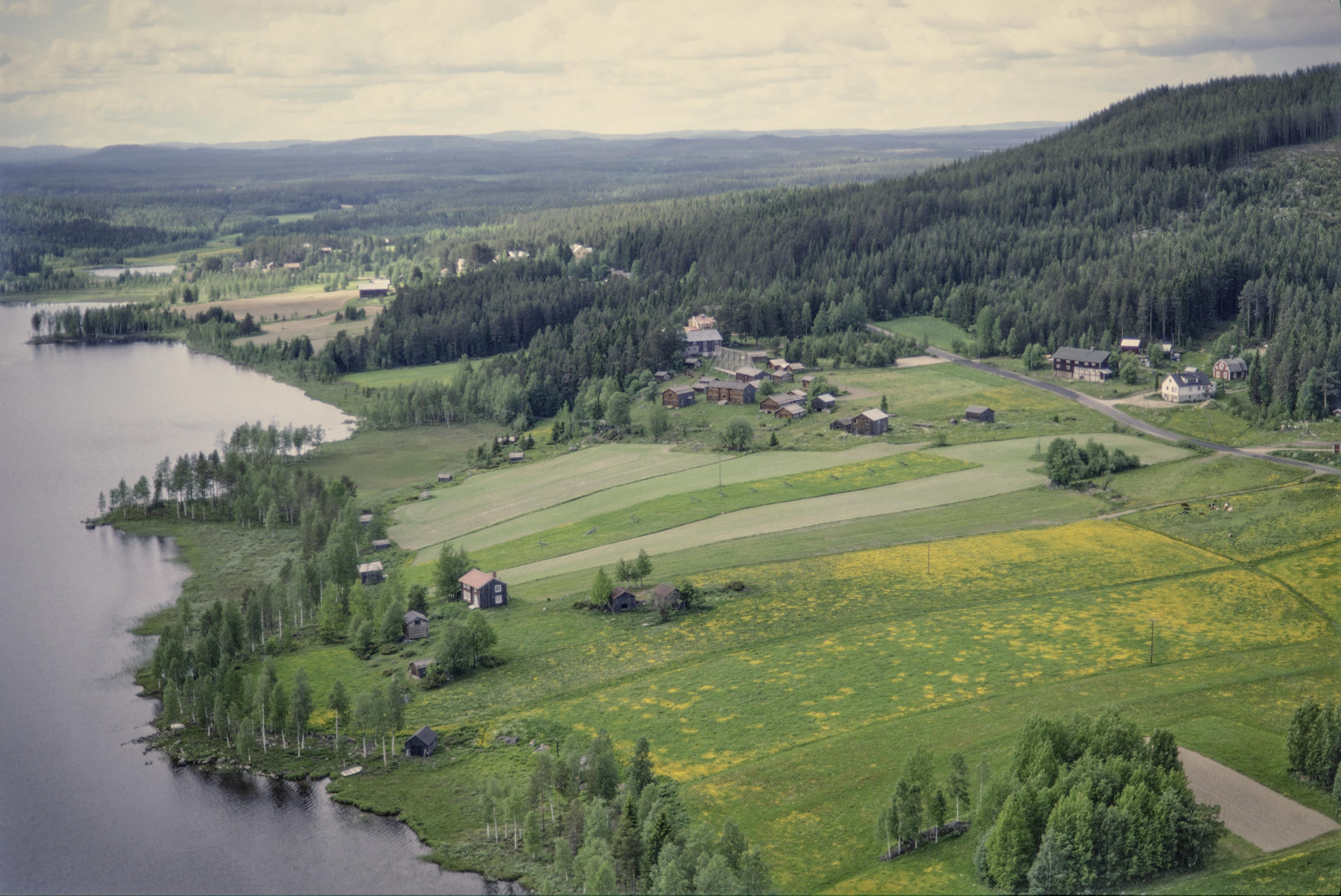 Beskrivning: Naturreservatet Myckelgensjösjön. Över bildens mitt Östalbyn med Gammgården hembygdsgård. I bildens övre del byarna Myckelgensjö och Västalbyn. Bilden är tagen mot (väderstreck): NV