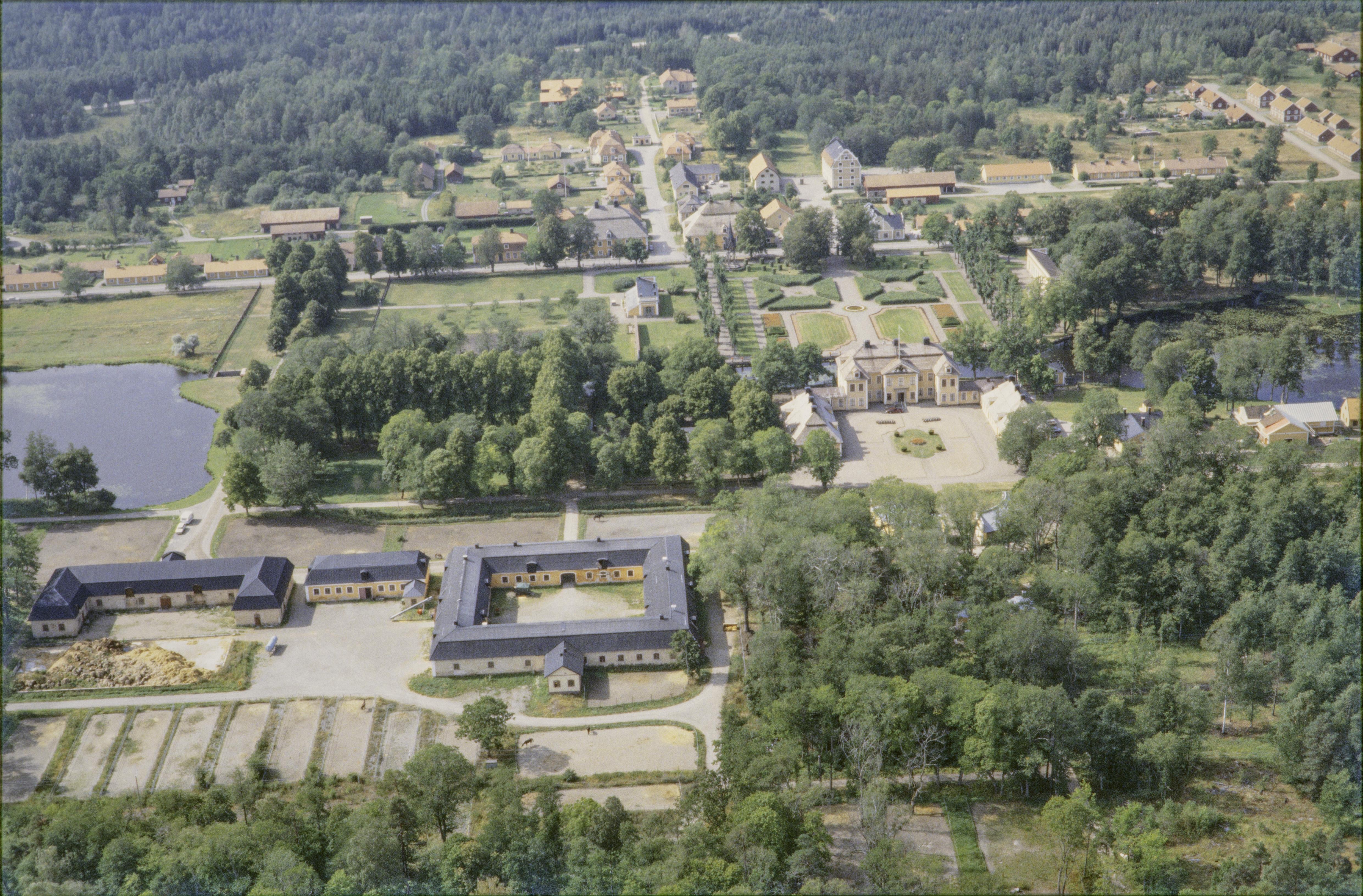 Beskrivning: Lövstabruk (byggnadsminne; skrivs även Lövsta bruk / Leufsta bruk) vid Upplandsleden. Lövstabruks kyrka och herrgård med engelsk park RAÄnr Österlövsta 252-254 vid Bruksdammen. Bilden är tagen mot (väderstreck): V