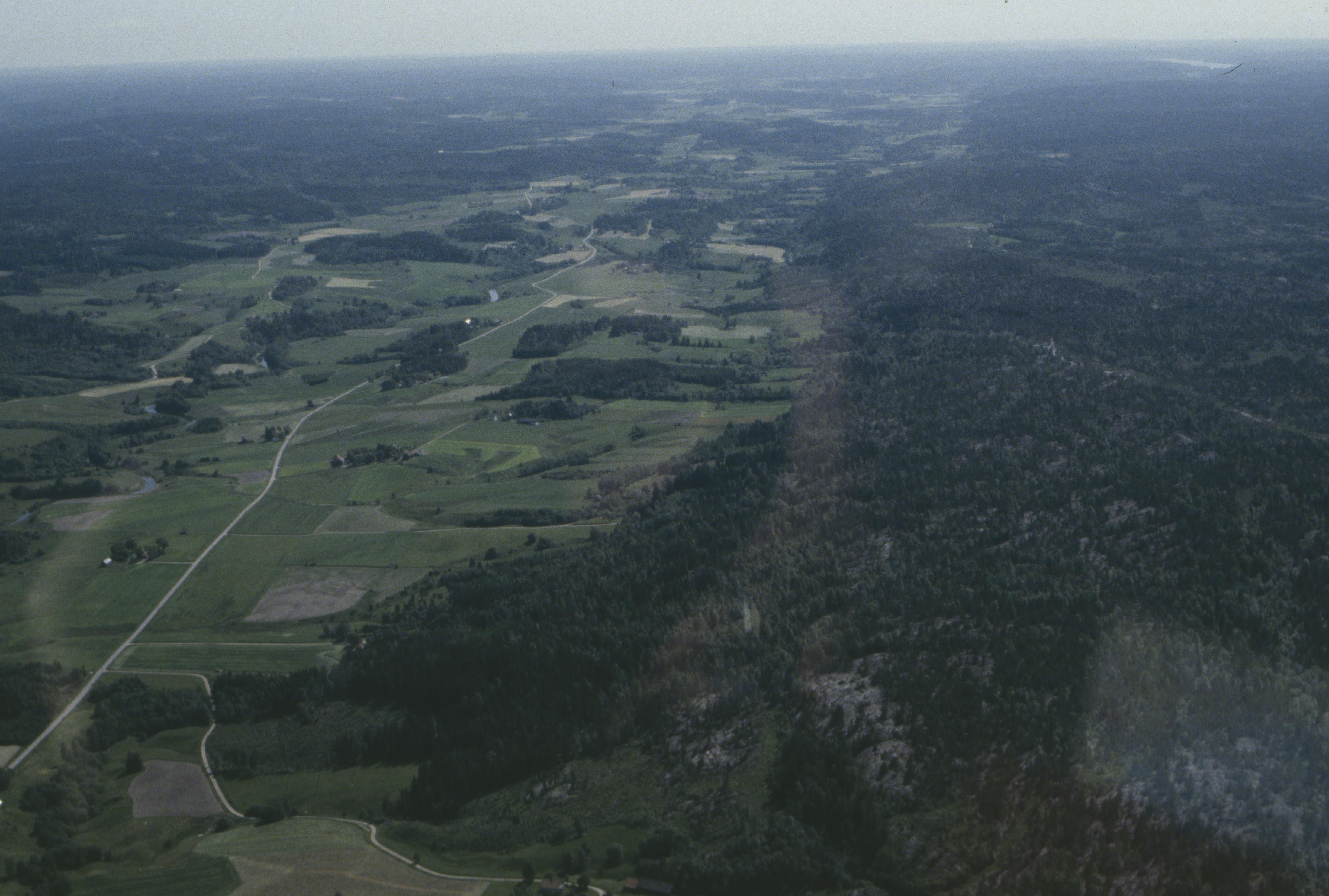 Beskrivning: Ån Djupebäck rinner ned i Örekilsälvens dalgång i bildens nedre kant. Vid bildens mitt bytomt RAÄnr Krokstad 296:1 vid Håfors by. Krokstads kyrka till höger i bildens övre del. Bilden är tagen mot (väderstreck): SSV