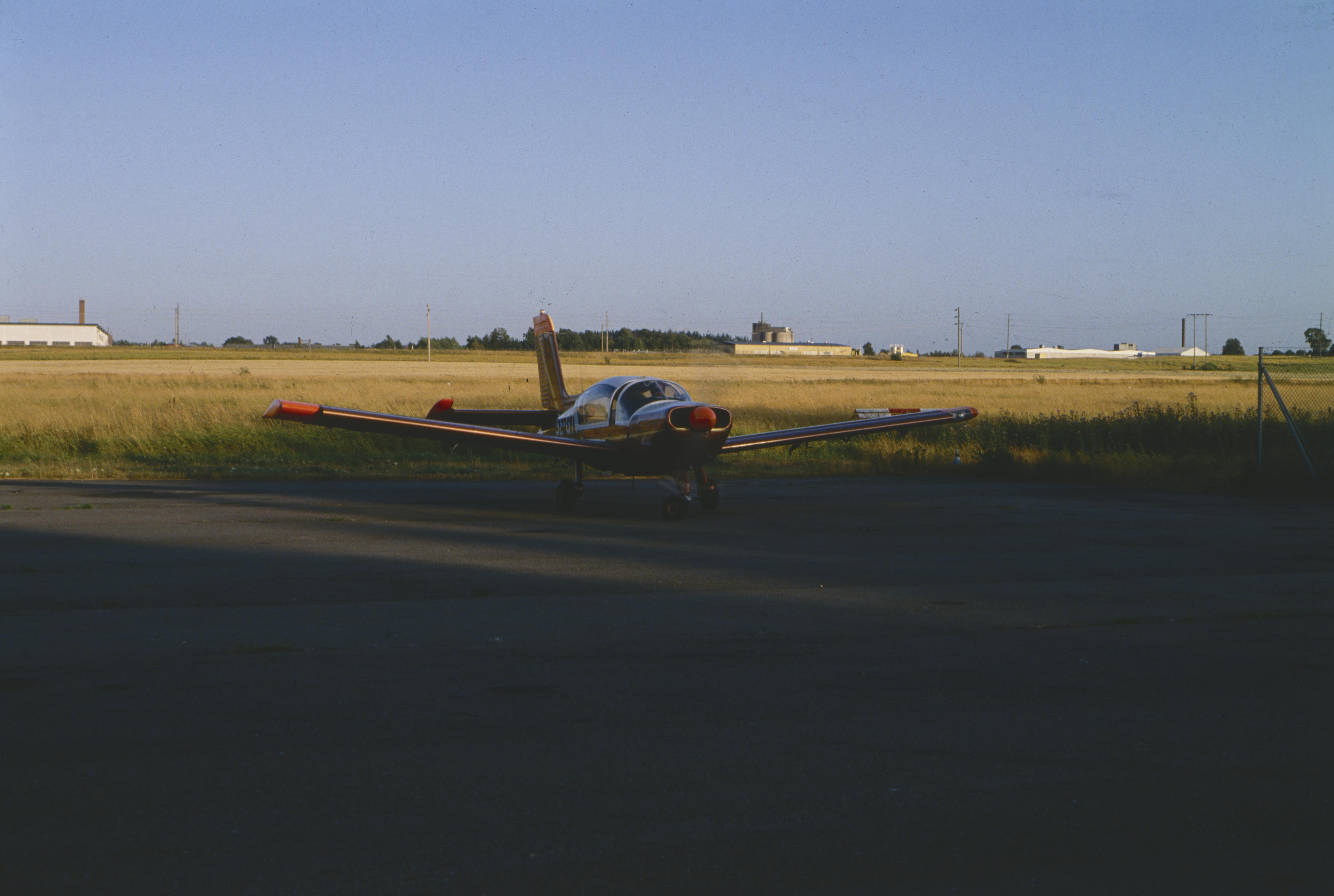 Beskrivning: Vårgårda flygfält, norväst om Vårgårda tätort. (NB! Ej flygbild, men markbild som visar flygplan och aktiviteter på flygfältet. Bilden är tagen mot (väderstreck): SSV