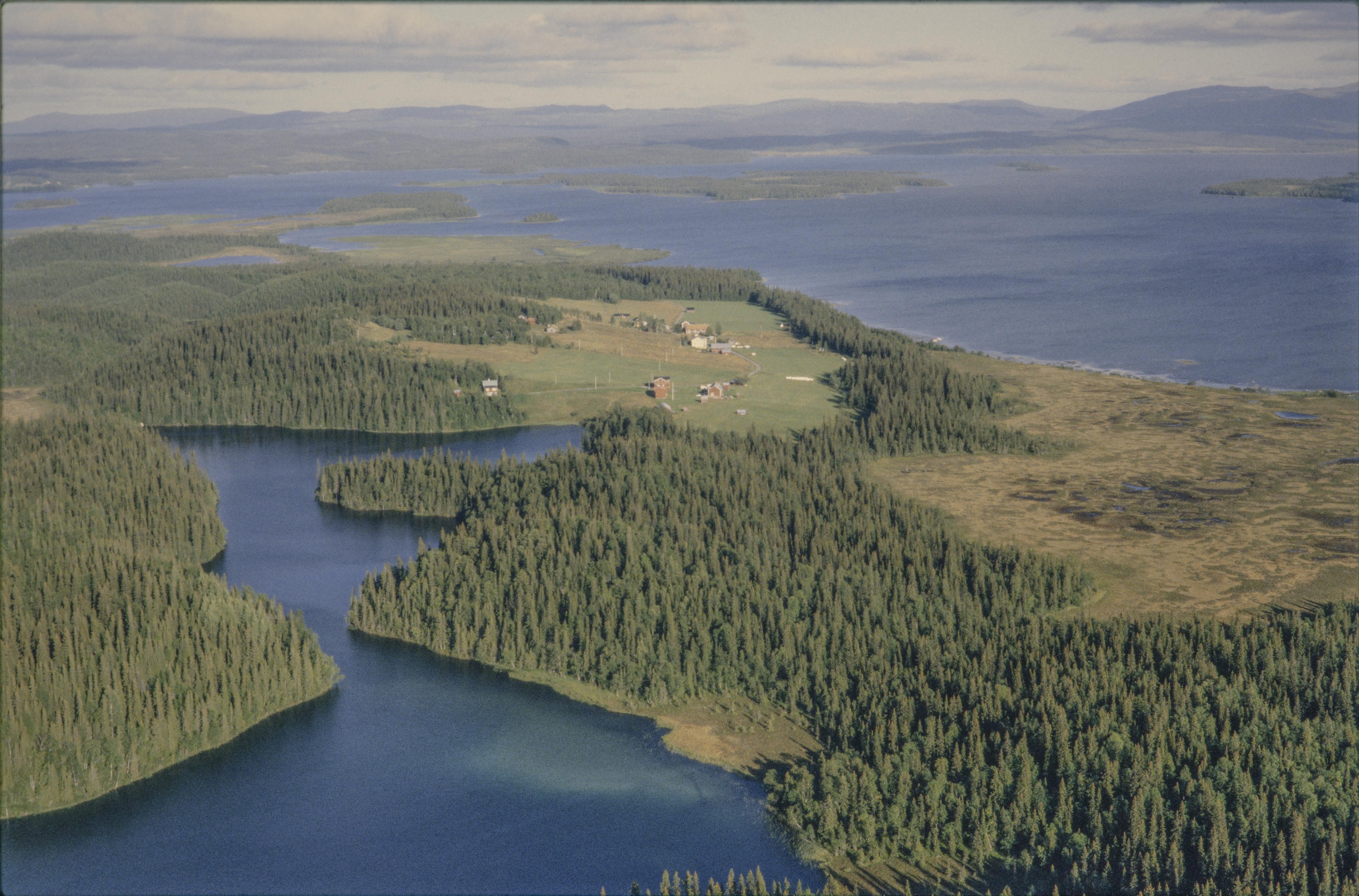 Beskrivning: Klocktjärnen i bildens nedre del. Klocka by över bildens mitt. I byn högarna RAÄnr Åre 180:1-3. Norra delen av Ånnsjön i bildens övre del. Bilden är tagen mot (väderstreck): Ö