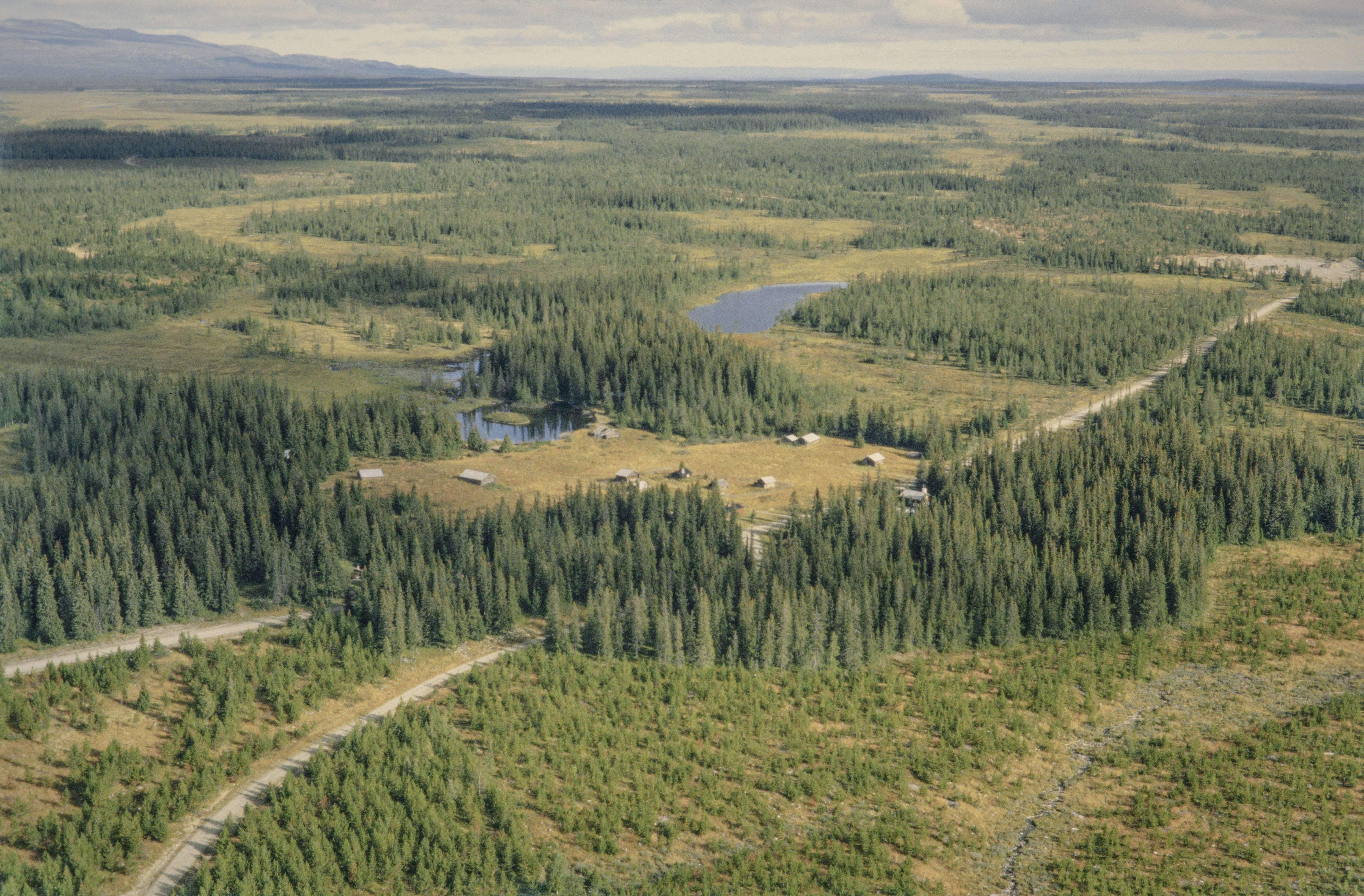 Beskrivning: Fittjebodarna i Ovikfjällens fäbodområde. Vid bildens mitt fäbod RAÄnr Oviken 460. Över bildens mitt Fittjebodtjärnen och uppe till höger fäbodområdet Gamla Fittjebodarna. Harmansbäcken nere till höger. Bilden är tagen mot (väderstreck): NNV