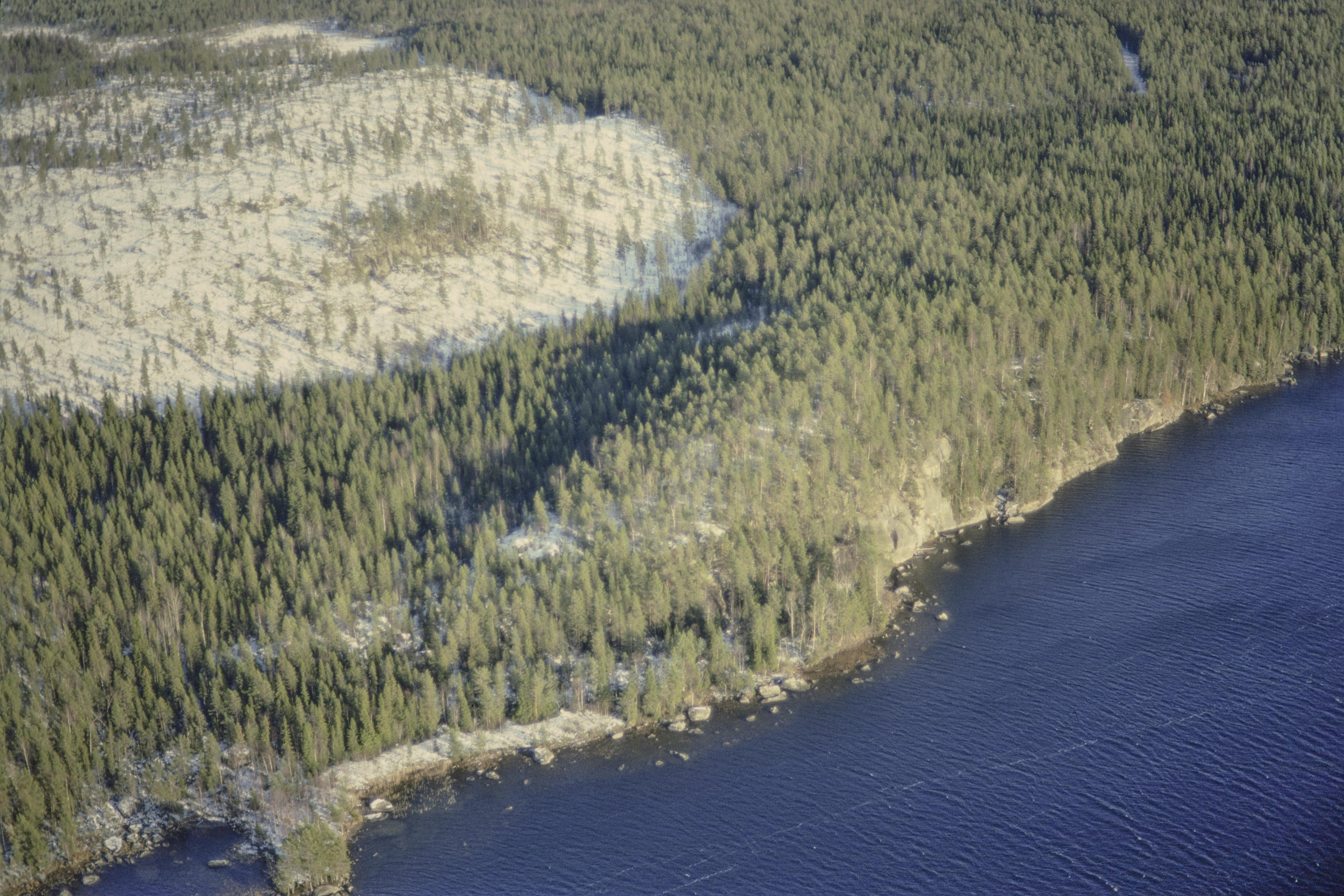 Beskrivning: Fångsjön, nordöstra området. Till höger under bildens mitt Fångsjöberget med hällmålningar RAÄnr Ström 332:1-3. Åsberget i bildens övre del. Bilden är tagen mot (väderstreck): ONO