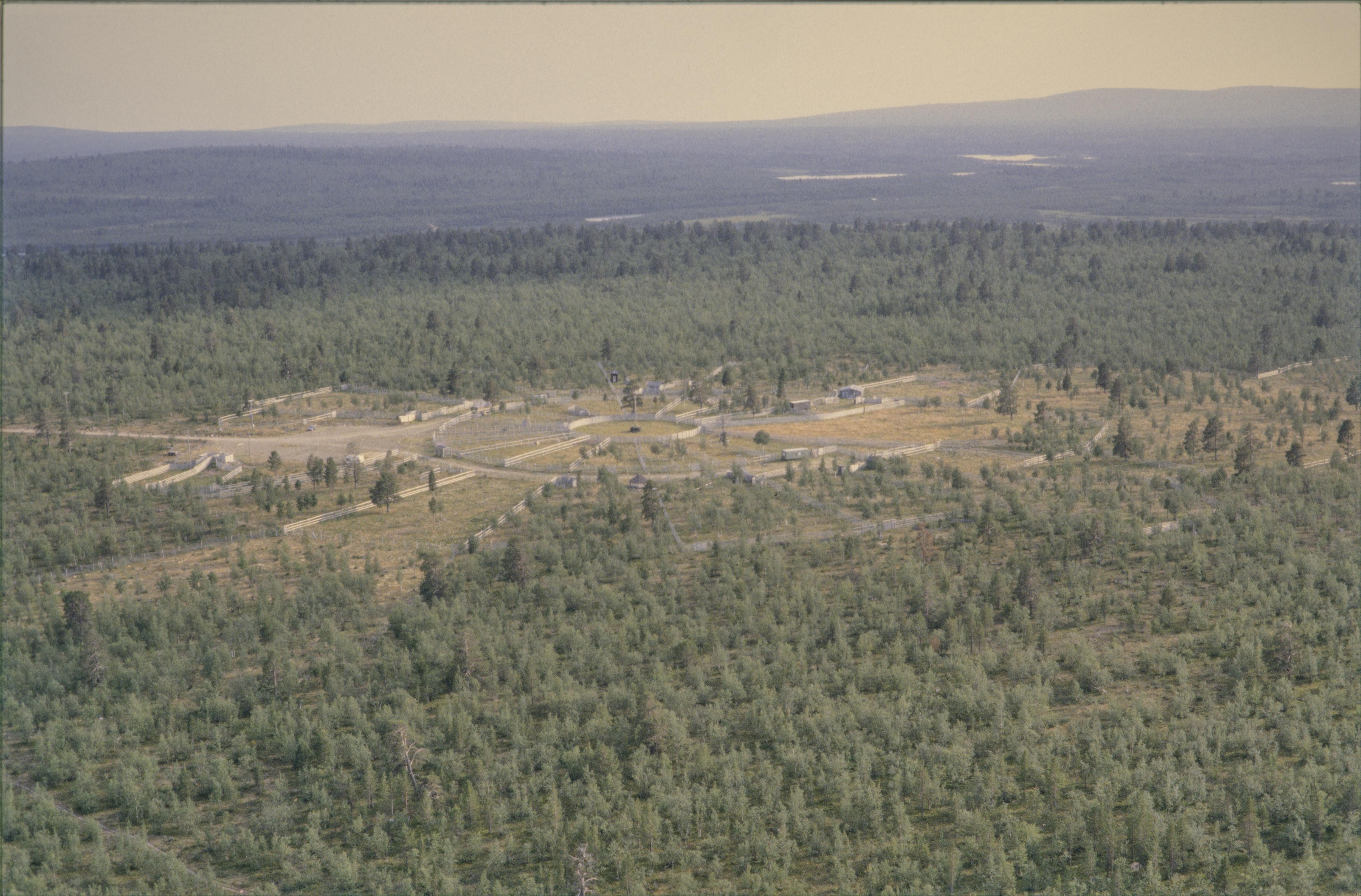 Beskrivning: Område med rengärden i skogen nordväst om Kaitum (Njavvi) by och sameviste. Bilden är tagen mot (väderstreck): S