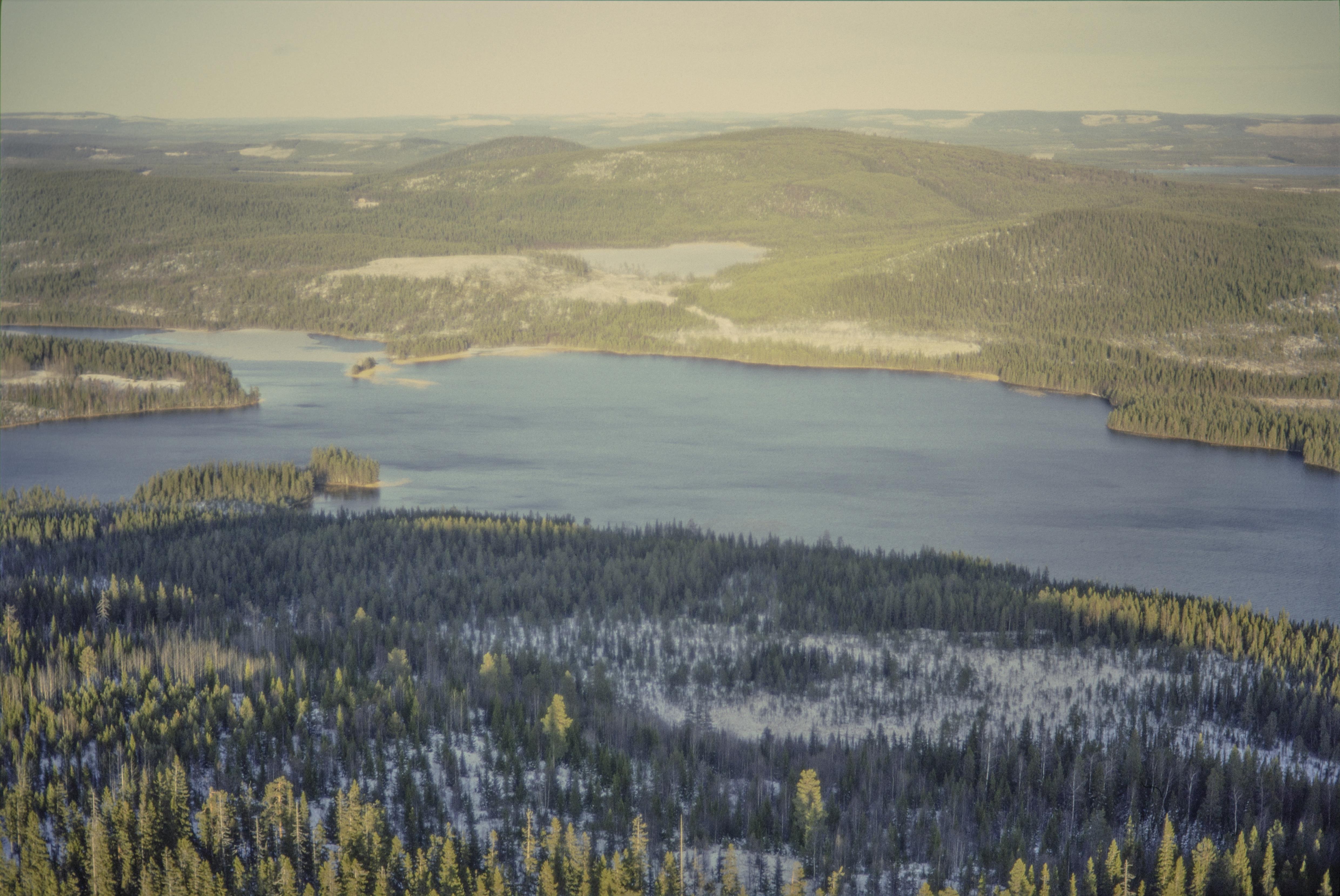 Beskrivning: Norra delen av Sämsjön. På udden till vänster om bildens mitt boplats RAÄnr Dorotea 748. Svartberget i bildens nedre del. Udden Sämsjönäs i bildens vänstra kant. Över bildens mitt gränsen mot Åsele socken. Över bildens mitt Storberget med hällmålning RAÄnr Åsele 151:1 vid Säljbergtjärnen. Bilden är tagen mot (väderstreck): NO