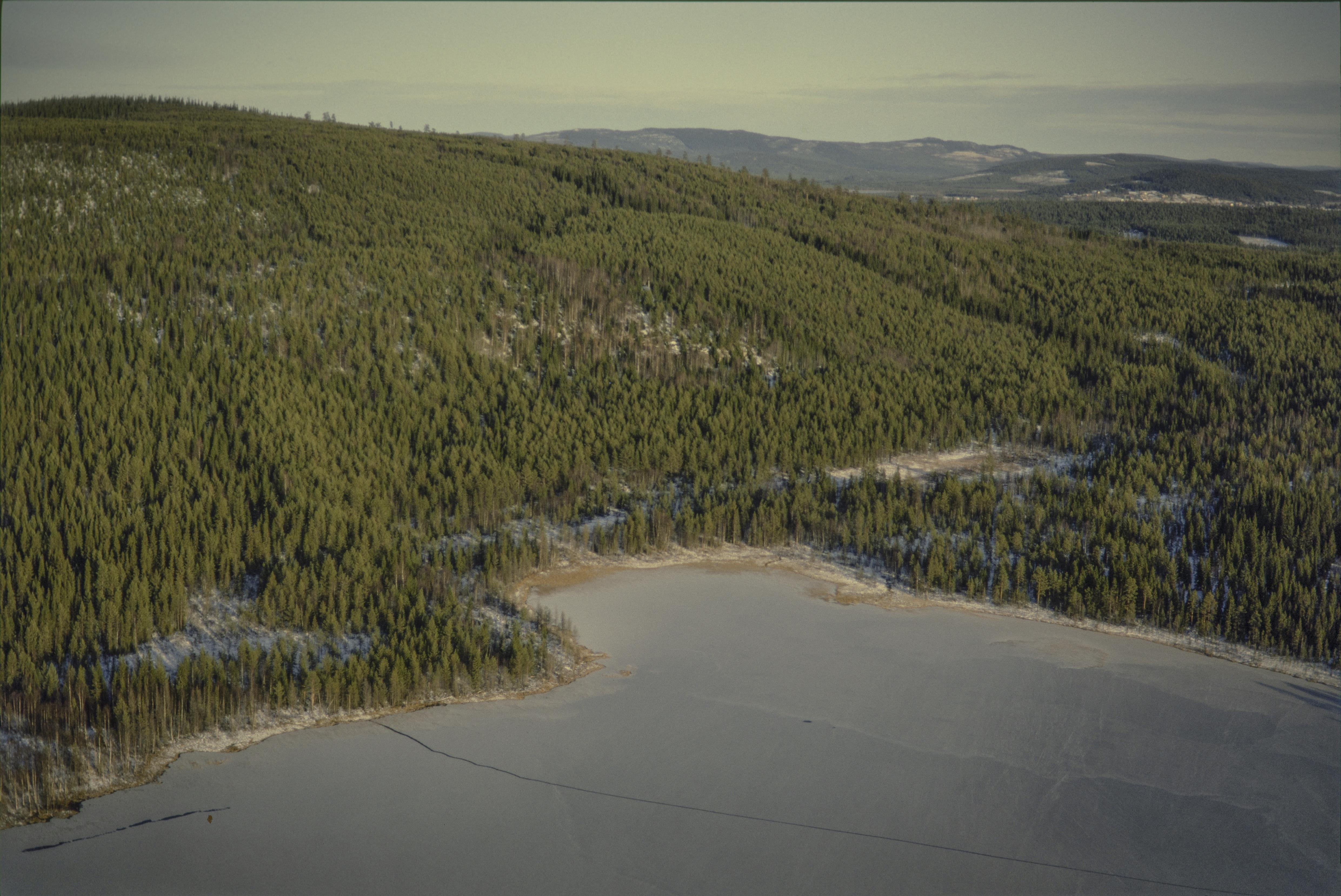 Beskrivning: I bildens nedre del Säljbergtjärnen vid Storberget nordost om Sämsjön. I skogen till höger över bildens mitt fångstgrop RAÄnr Åsele 152:1 och hällmålning RAÄnr Åsele 151:1. Bilden är tagen mot (väderstreck): NO