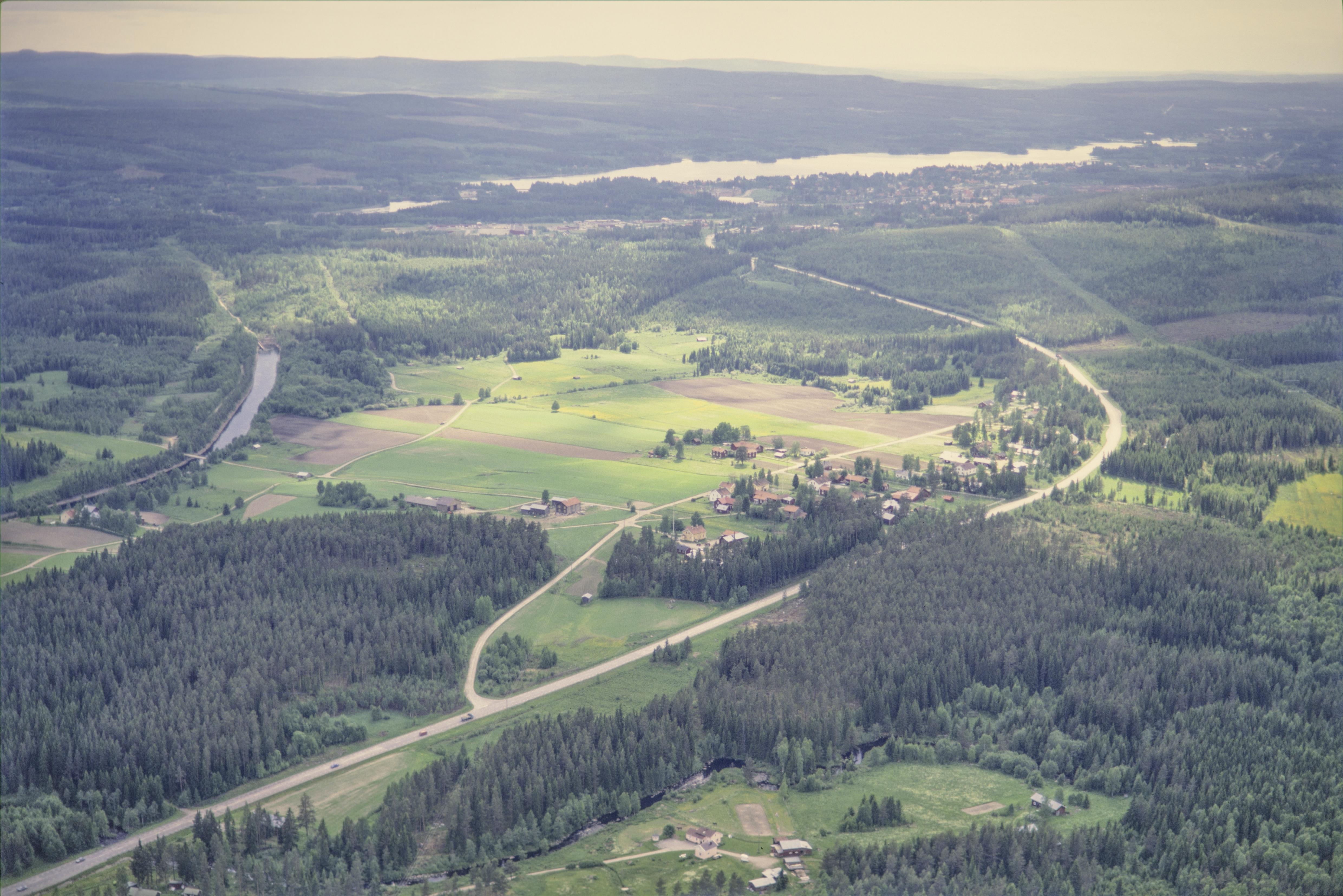 Beskrivning: Ån Ljungans dalgång. Boltjärns by vid Kanalen (längs bildens vänstra del). Uppe till höger Ånge tätort vid Ångesjön. Över bildens mitt Ånge kraftverk. Vid kraftverket fångstgropar RAÄnr Borgsjö 62:1-2. Bilden är tagen mot (väderstreck): SV