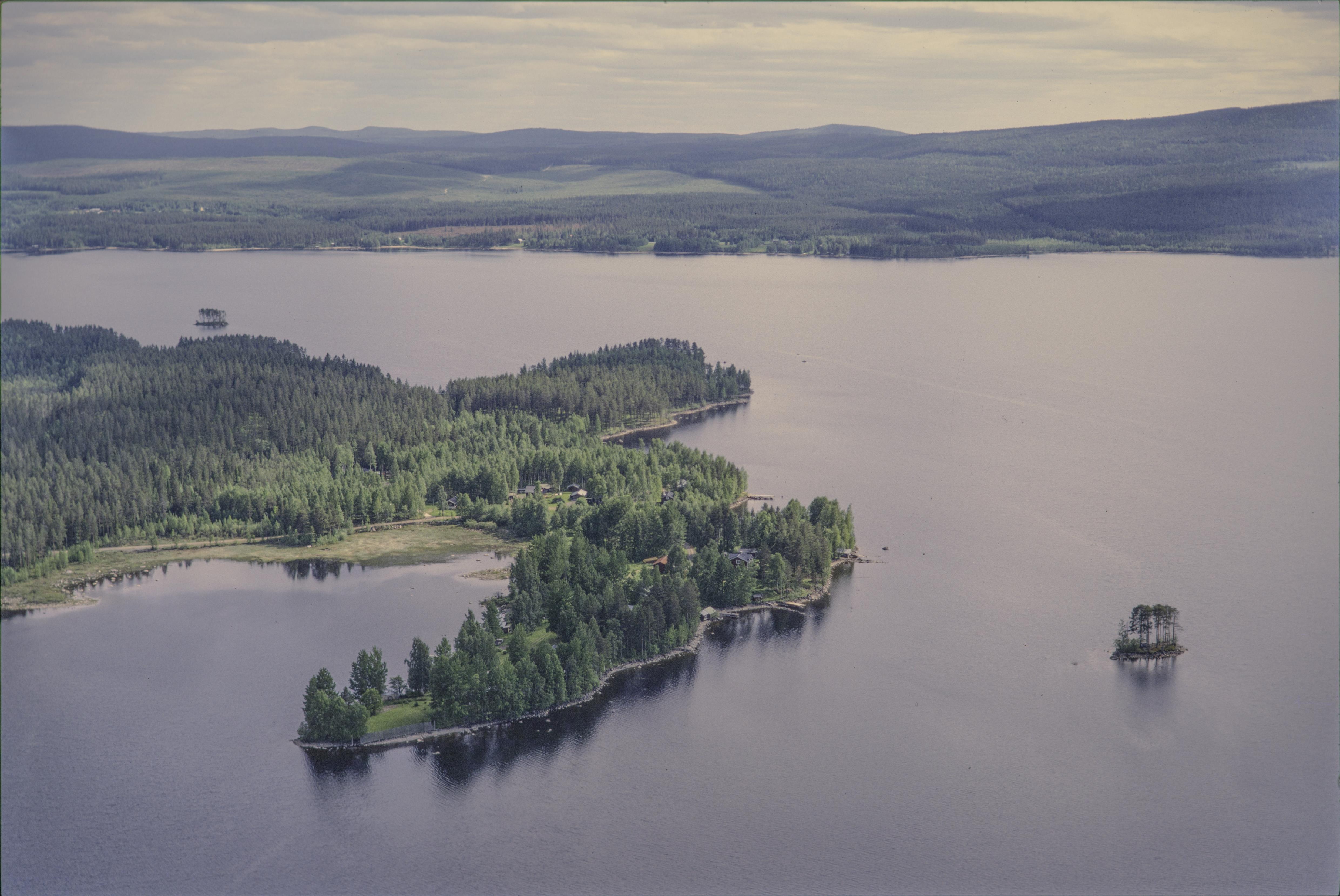 Beskrivning: Skärsundviken i Holmsjön. I bildens vänstra del Juånäsets by och Skrakarudden i västra änden av Juånäset. Boplats med stensättning RAÄnr Haverö 120:1-2 på holmen nere till höger. I bildens övre del Holmsjön mot Holmsjöåsen. Bilden är tagen mot (väderstreck): SV