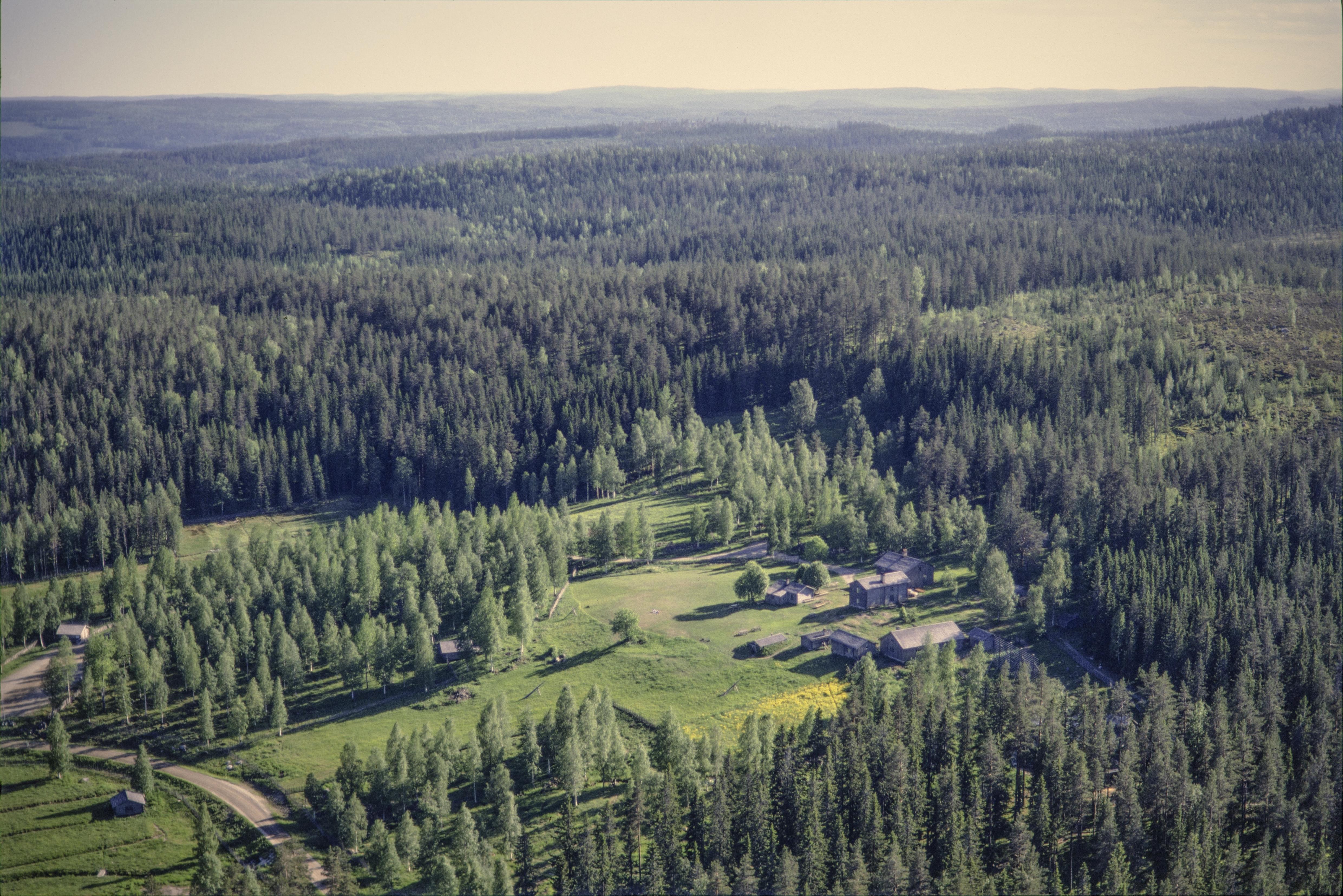 Beskrivning: Väster om sjön Gudmundstjärn. Området i och runt sjön är naturreservat. Skogshemmanet och byggnadsminnet Nybygget med 23 byggnader. I bildens nedre kant Alberttorpet RAÄnr Indal 81:1. Bilden är tagen mot (väderstreck): SV