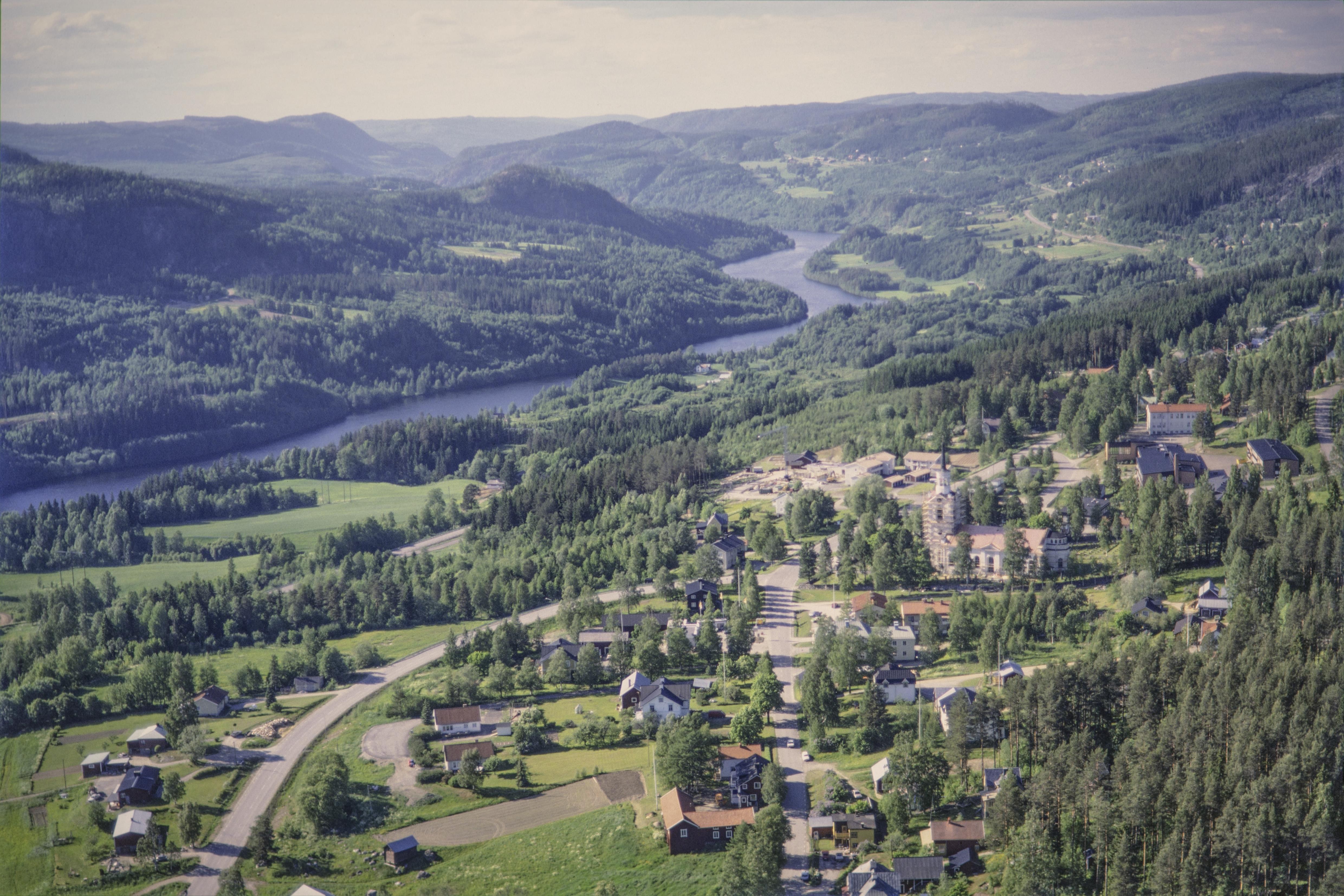 Beskrivning: Indalsälvens dalgång vid Lidens kyrkby. Lidens kyrka till höger om bildens mitt. Vid kyrkan färdväg RAÄnr Liden 447. Bilden är tagen mot (väderstreck): NNV