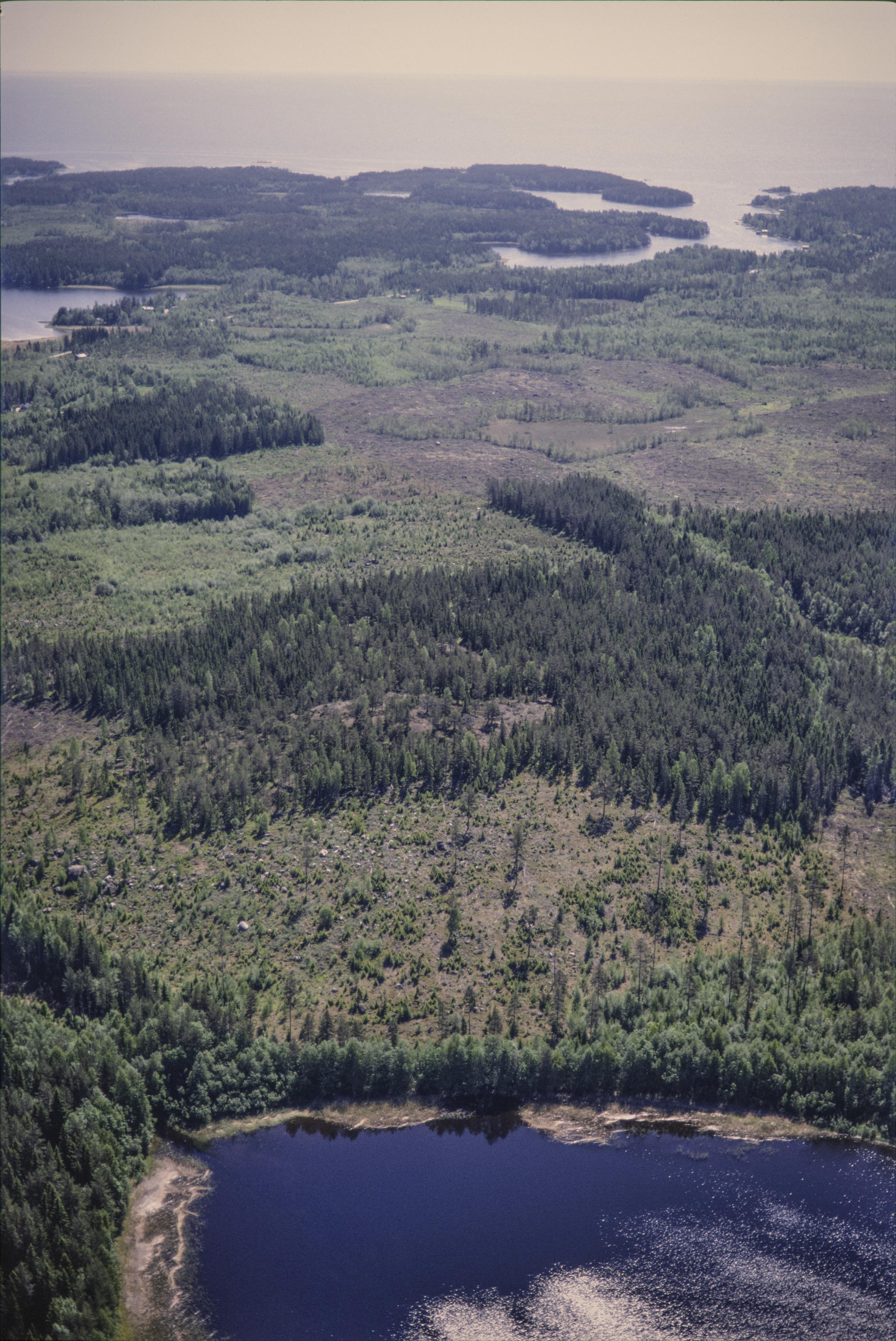Beskrivning: Njurundakusten. I bildens nedre del Konnsjön. Under bildens mitt Omsberget med gravfält och rösen RAÄnr Njurunda 75:1, 76:1, 77:1-2, 78:1 m.fl. I bildens övre del halvön Galten. Bilden är tagen mot (väderstreck): SO
