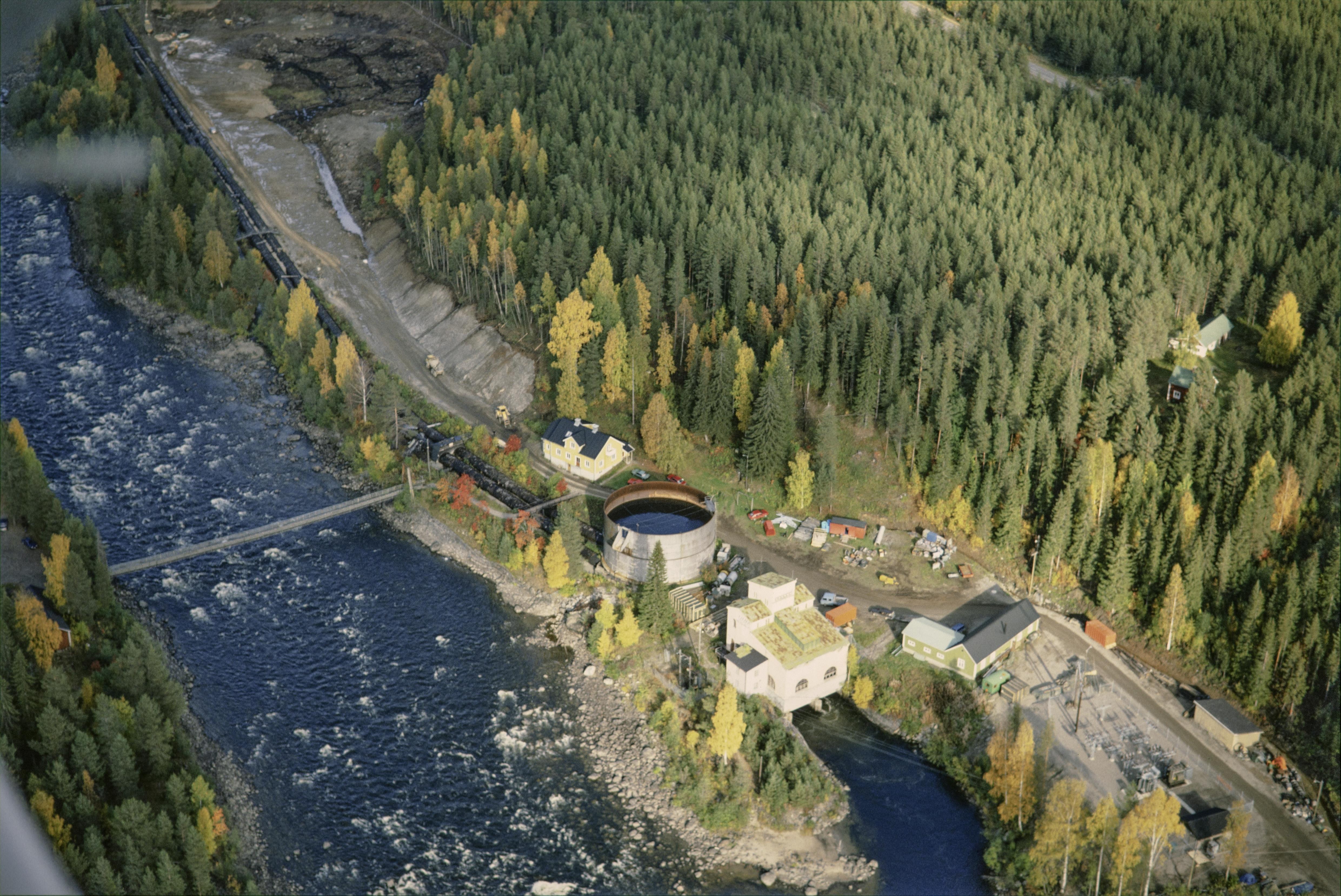 Beskrivning: Sikfors kraftverk i Piteälven. Vid älvstranden uppe till vänster härd RAÄnr Piteå socken 454:1 och boplats Piteå socken 453:1. Bilden är tagen mot (väderstreck): NO