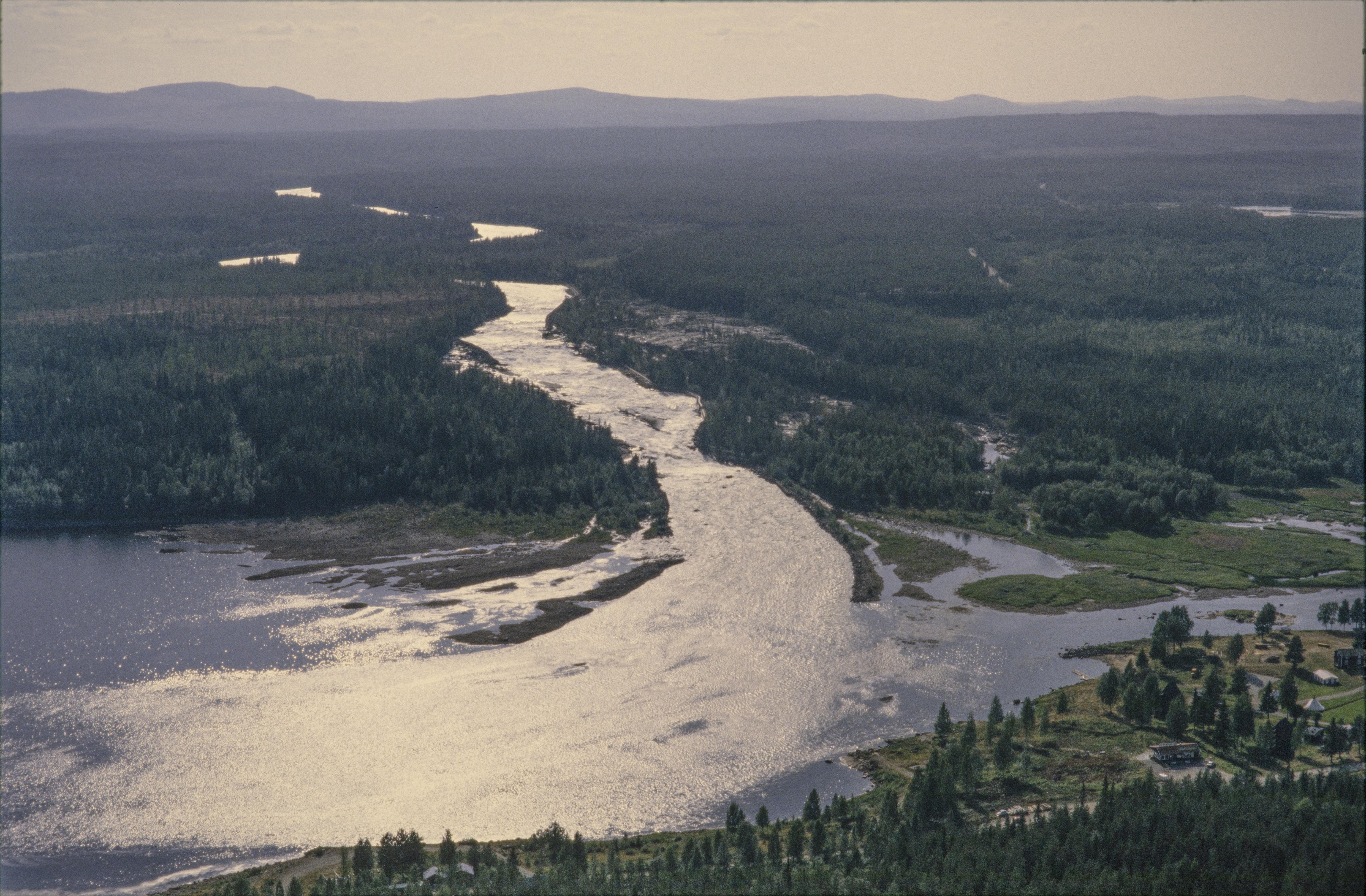 Beskrivning: Storforsen där Piteälven och Varjisån möts i sjön Bredselet. Till höger om bildens mitt bildens mitt boplats RAÄnr Älvsby 952:1, 953:1, m.m. i området Döda fallet. Storforsens naturreservat. Bilden är tagen mot (väderstreck): SV
