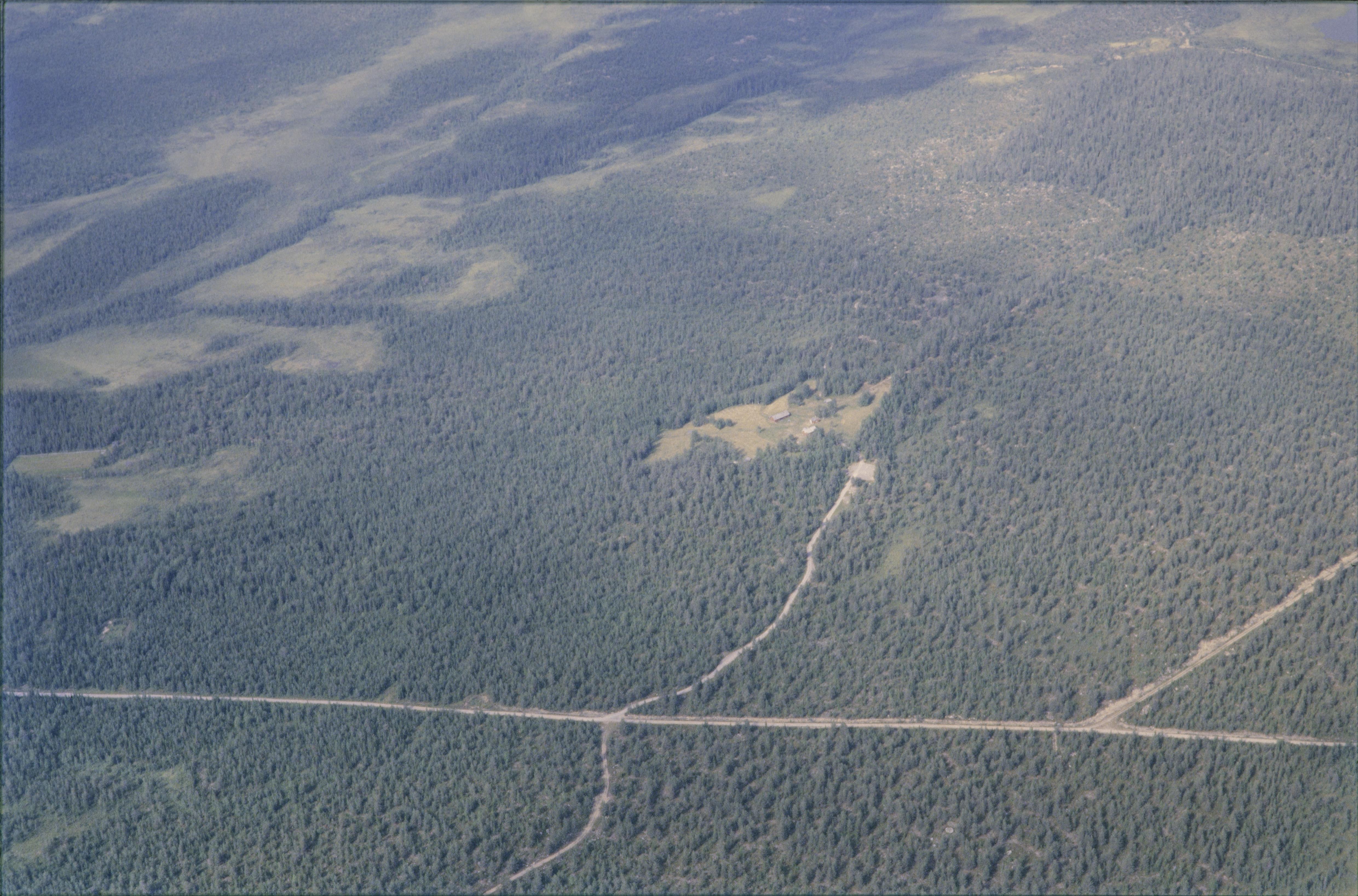 Beskrivning: I bildens mitt Rikti-Dockas, ett ensamliggande, skogssamiskt nybygge från 1800-talet. I området begravningsplats / sommargravar RAÄnr Överkalix 73:1-4. Bilden är tagen mot (väderstreck): NV