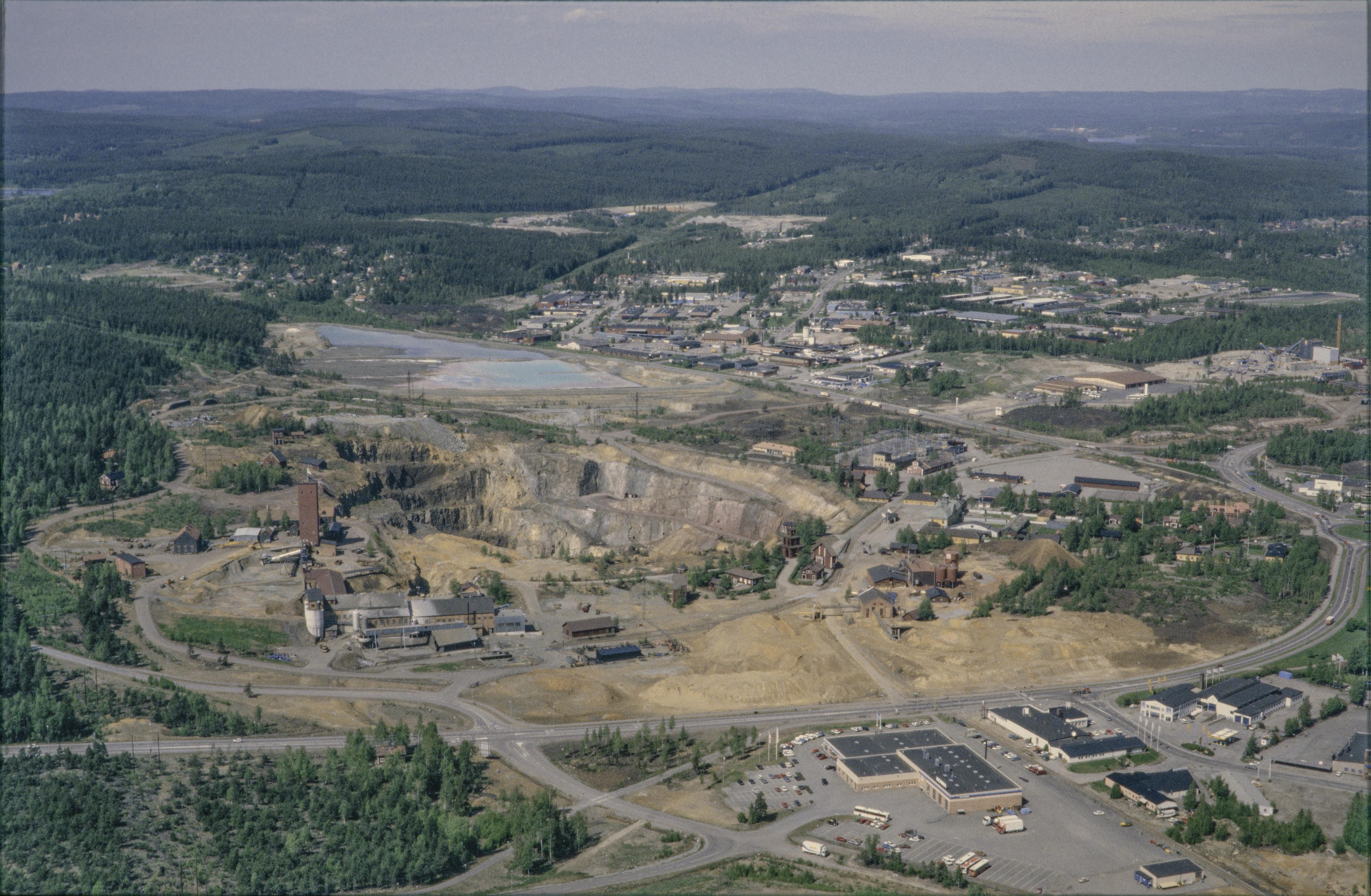 Beskrivning: Anmärkning (övrig): Riksintresse-nr/namn: W15 - Falun. Socken: Falu stad och Stora Kopparberg. Motivering: Industri- och stadsmiljö som speglar en nära tusenårig industriell tradition, kring Sveriges viktigaste tidigindustriella koppargruva som hade avgörande ekonomisk betydelse under landets stormaktstid, jämte tillhörande hyttområden samt residensstadens utveckling under 1800-talets slut och 1900-talets början. (Gruvmiljö, Tidigindustriell miljö). - Uttryck för riksintresset: Området kring gruvan med spår av en medeltida kolonisation och småskaligt jordbruk, dominerande bergsmansgårdar, storslagna slaggvarpar och hyttlämningar samt den medeltida Stora Kopparbergs kyrka, uttryck för gruvans blomstringstid vid(…) Texten i detta fält har förkortats vid migrering till e-arkivet. Se filbilagan extra.xml för fullständig information under note_archivist. Beskrivning: Gruvhålet Stora Stöten RAÄnr Falun 17:1 i Falu koppargruva sydväst i Falu stad. Gruvmuseet till höger om bildens mitt. Bilden är tagen mot (väderstreck): NV Fotosyfte: Flygbildsdokumentation