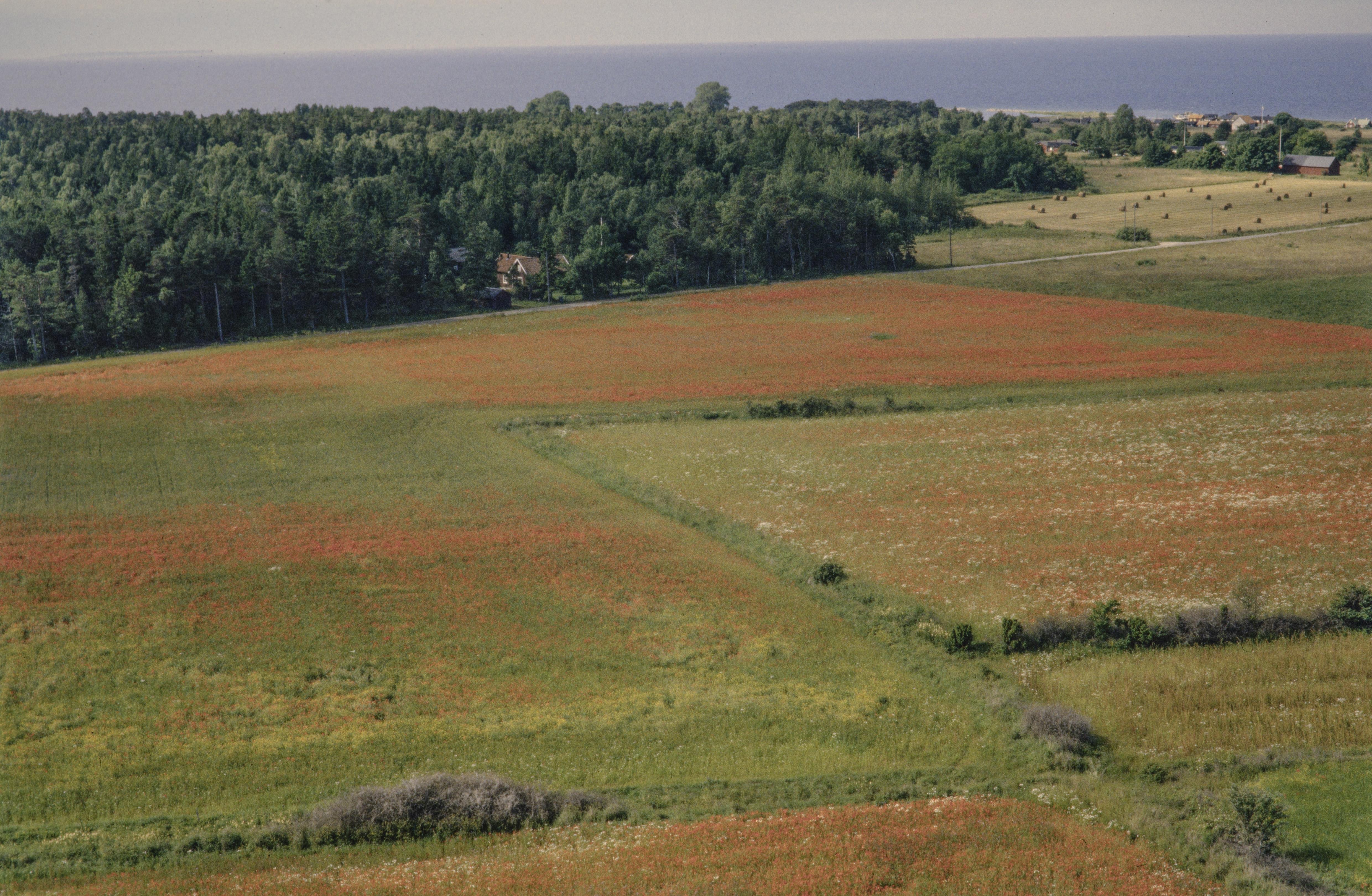 Beskrivning: Anmärkning (övrig): Riksintresse-nr/namn: I60 - Gotländska fiskelägen. Socken: (div). Motivering: Fiskelägen i gotländsk tradition, ofta med rötter i förhistoriska hamnlägen, bestående av bodar från 1600- till 1900-talet, byggda för redskapsförvaring och tillfällig övernattning för det husbehovsfiske som Gotlands bönder fordom bedrev då alla hade tillgång till stranden. - Uttryck för riksintresset: Fiskelägena är inbördes olika, med oftast träbodar på västra och norra Gotland och stenbodar på östra och södra Gotland. De äldsta bodarna är byggda i skiftesverk eller knuttimring med gavelingång och faltak, de något yngre i sten med flistak på södra Gotland, de yngsta i resvirke med spån- eller papptak. Till fiske(…) Texten i detta fält har förkortats vid migrering till e-arkivet. Se filbilagan extra.xml för fullständig information under note_archivist. Beskrivning: Norra delen av fiskeläget Grisvärd. Vallmofält i Norra Grisvärd, söder om området Gocksen. I skogen uppe till höger röse och gravfält RAÄnr Tofta 13:1-2. Bilden är tagen mot (väderstreck): VSV Fotosyfte: Flygbildsdokumentation