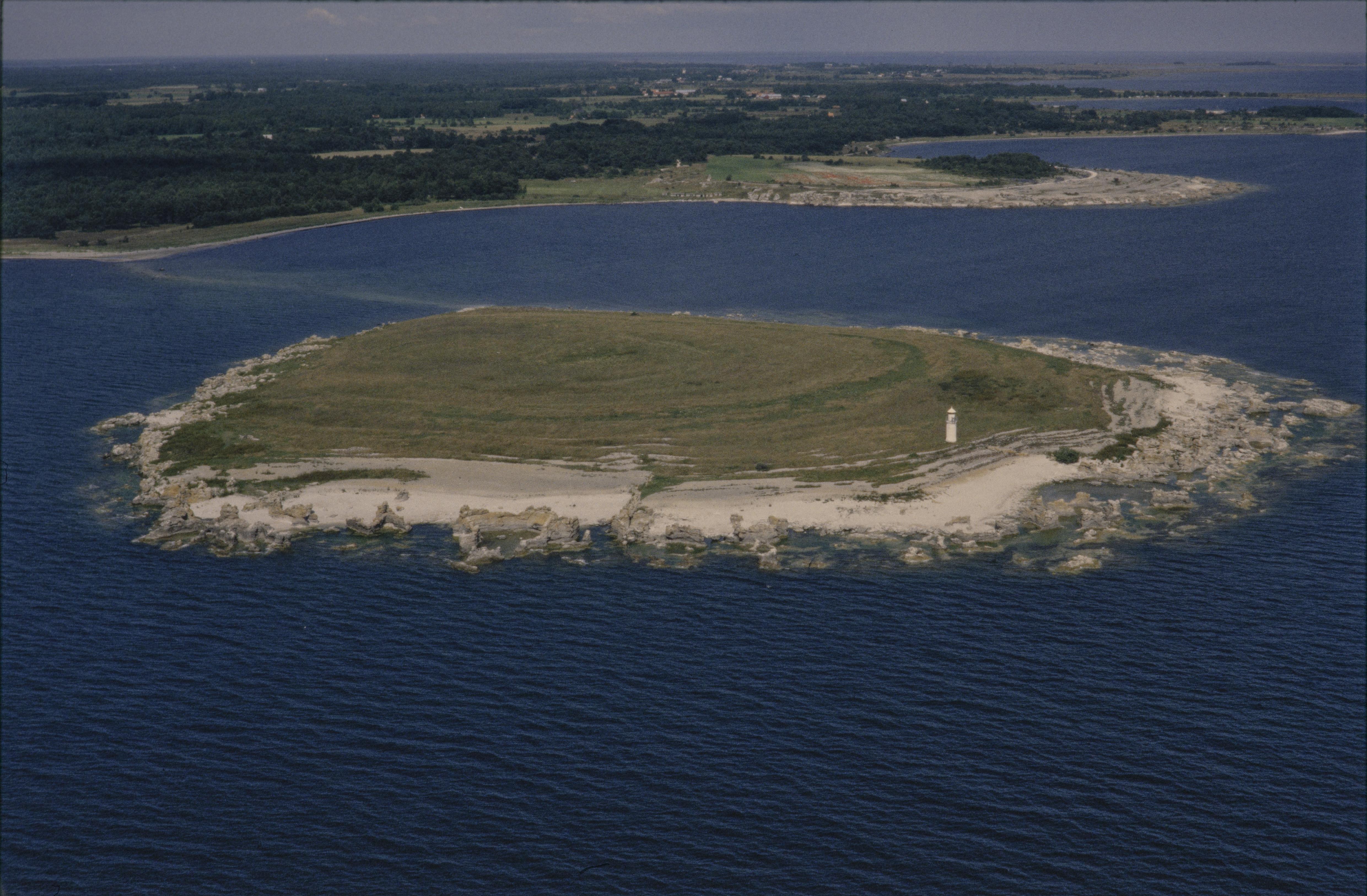 Beskrivning: Heligholmen med fyrplats. I norra delen av holmen båtlämningar RAÄnr Vamlingbo 181:1. På Gotlandsön i bildens övre del fiskeläget Holmhällar med raukområde. Hamra socken till höger i bildens övre kant. Bilden är tagen mot (väderstreck): NNO