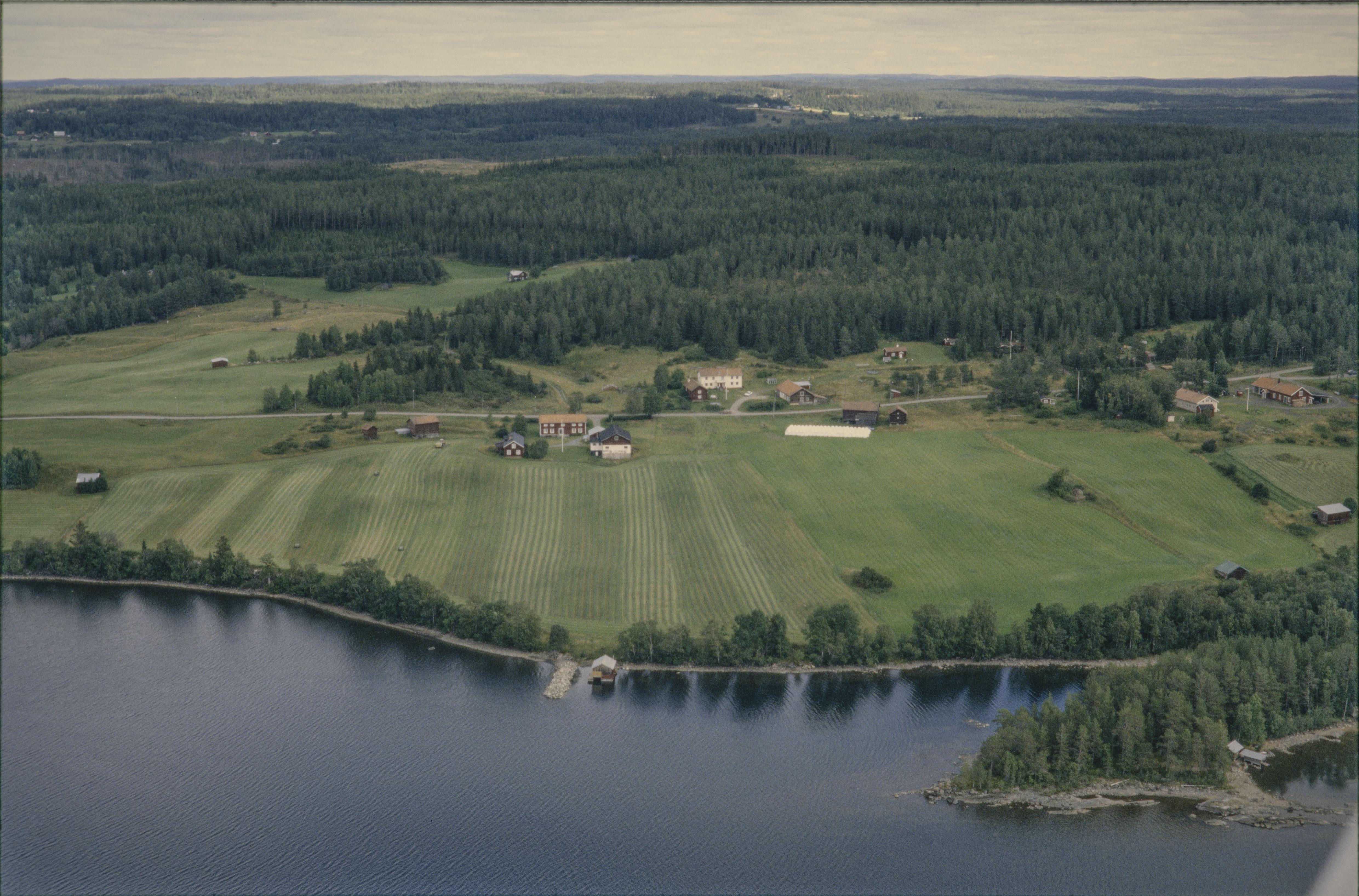 Beskrivning: Sinnbergs by på östsidan av sjön Näkten. Vid strandkanten under bildens mitt hamnen Sinnbergvågen RAÄ Näs 141. Vid bildens mitt bytomt RAÄnr Näs 259 och 260 m.m. Bilden är tagen mot (väderstreck): Ö