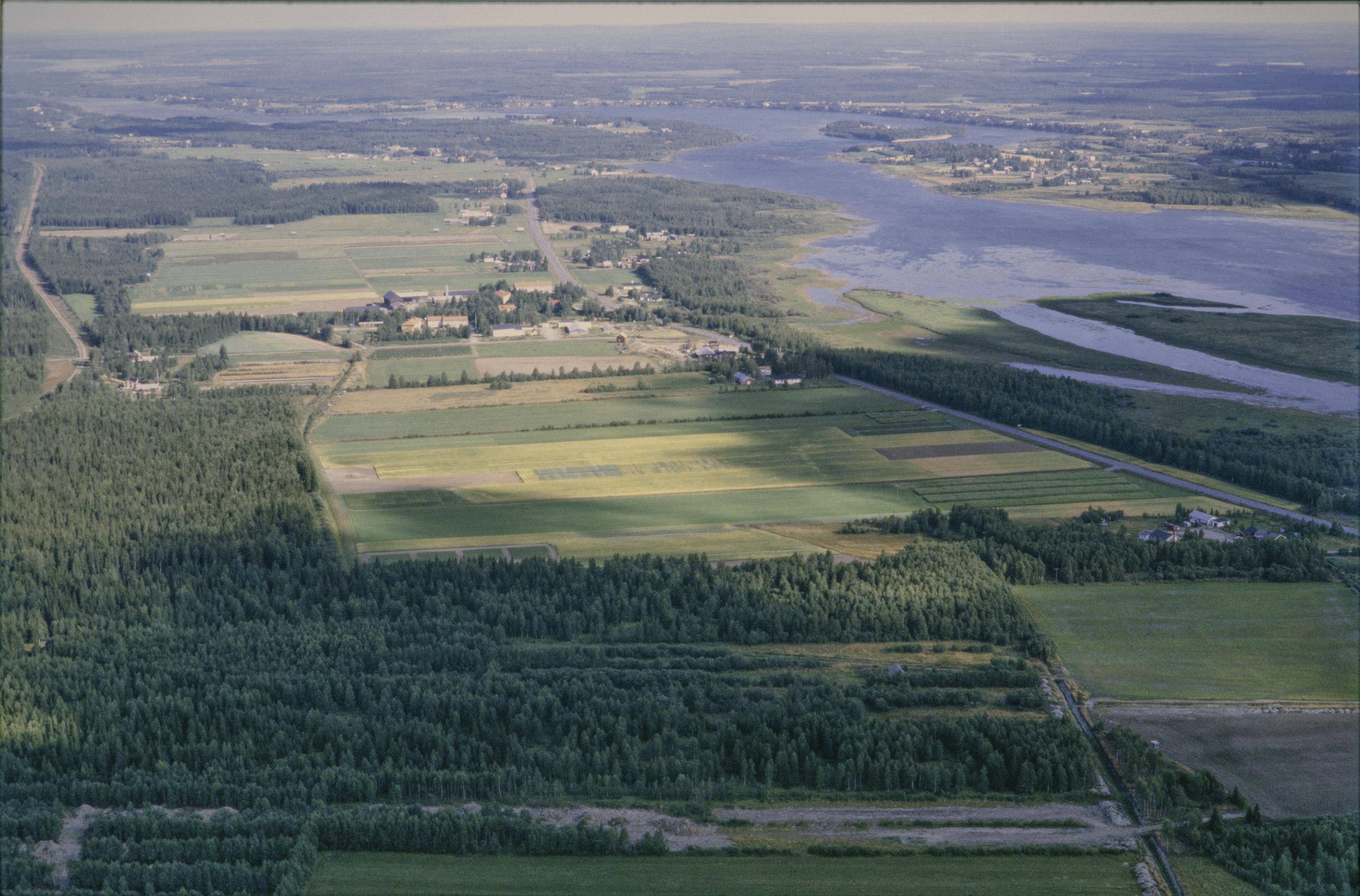 Beskrivning: Nedre Vojakkala (Ala-Vojakkala) by vid Torneälven och riksgränsen mot Finland i öst. Nere i bildens högra hörn torplämning RAÄnr Nedertorneå 358:1. Ett område i Finland till höger i bildens övre del. Bilden är tagen mot (väderstreck): N