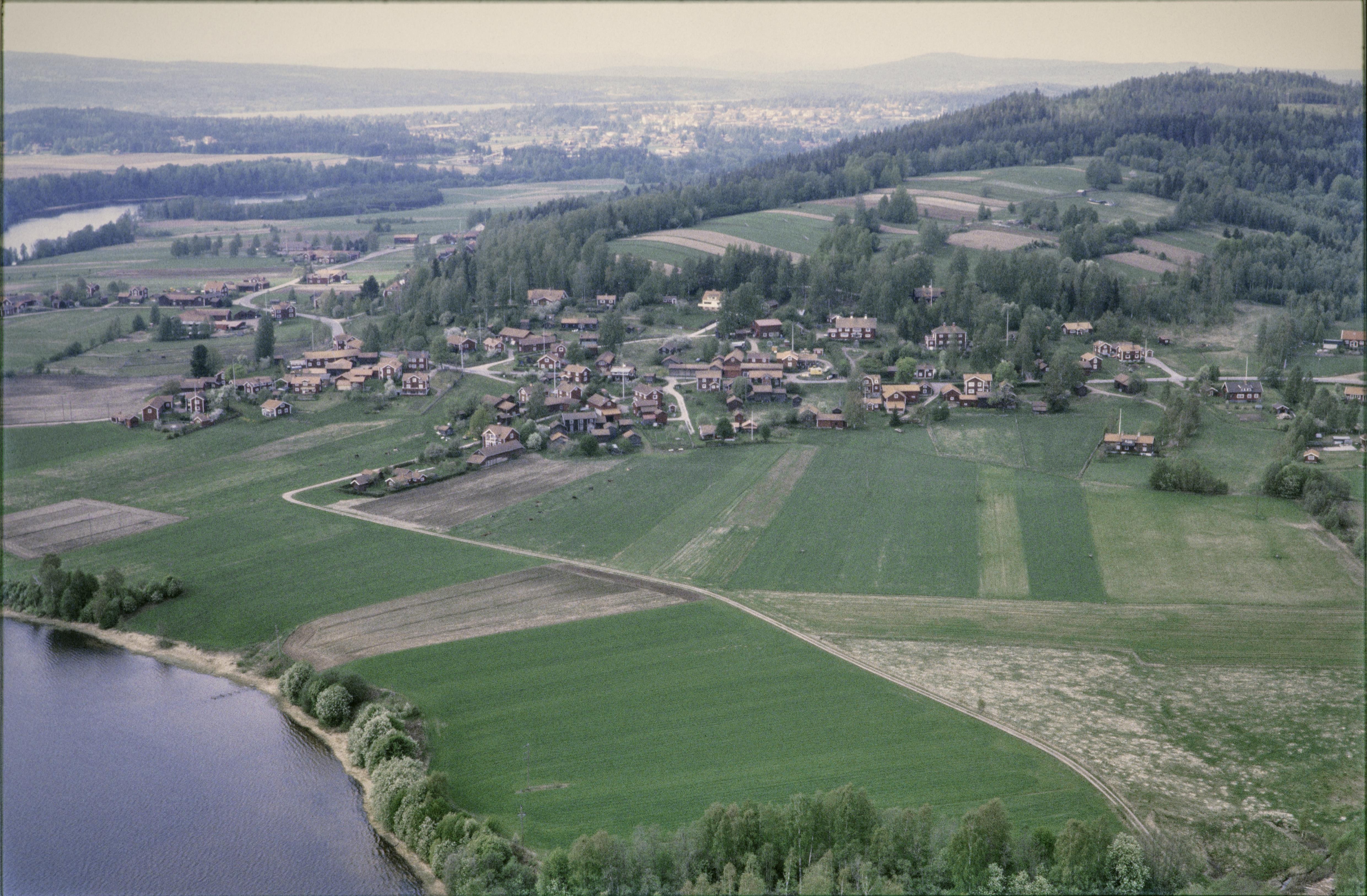 Beskrivning: Ullvi by vid Österdalälven. I bildens nedre del till vänster blästbrukslämning RAÄnr Leksand 569:1 vid stranden. Bilden är tagen mot (väderstreck): V