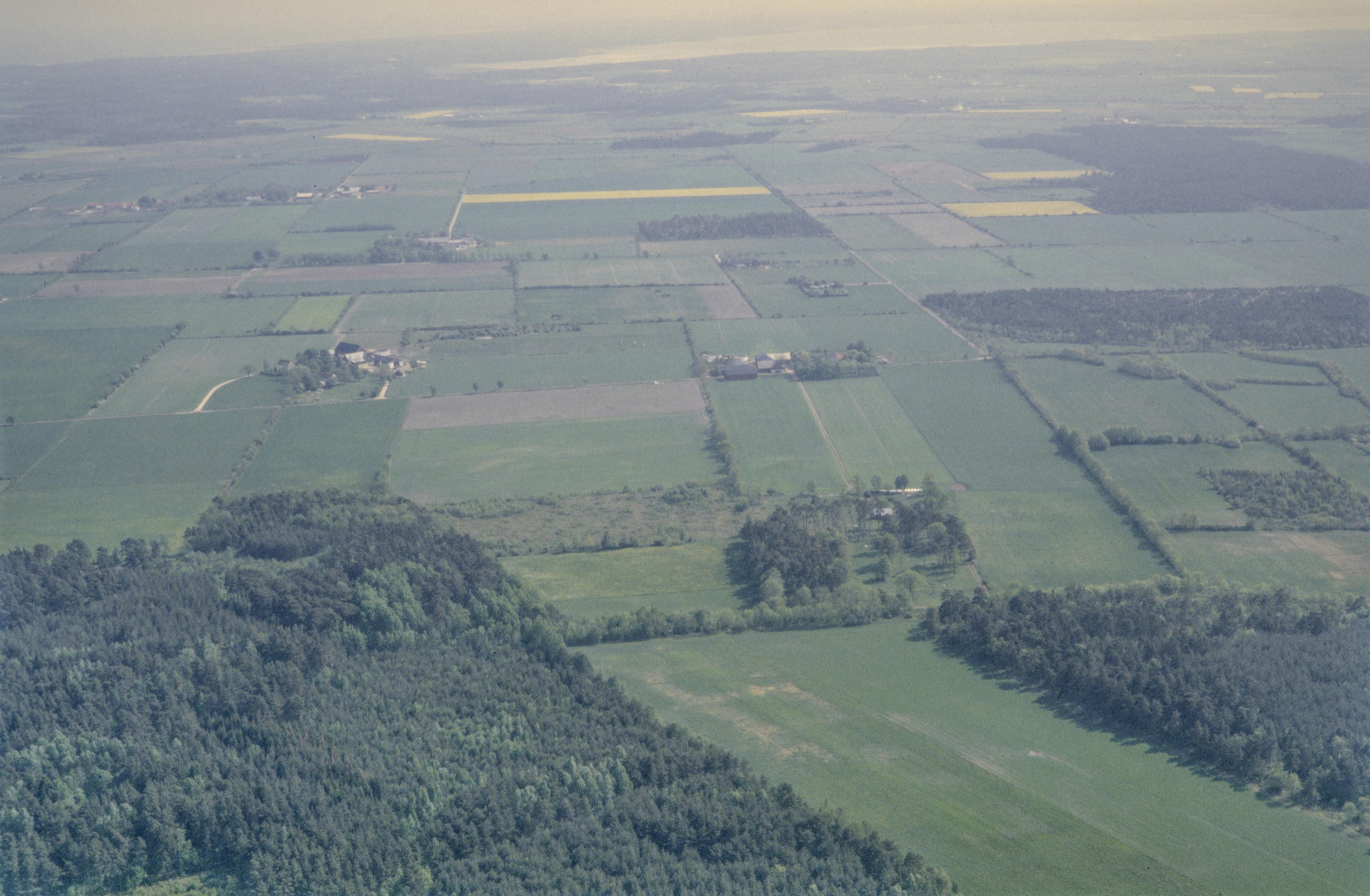Beskrivning: Beskrivning: I bildens nedre del fossil åker RAÄnr Hablingbo 136:1, hägnad Hablingbo 124:1, stenkrets Hablingbo 15:1 m.m. i området vid gårdarna Hemmungs och Medeby. Under bildens mitt gränsen mot området Anningåkre och socknet Havdhem (i bildens övre del). Bilden är tagen mot (väderstreck): S Fotosyfte: Flygbildsdokumentation