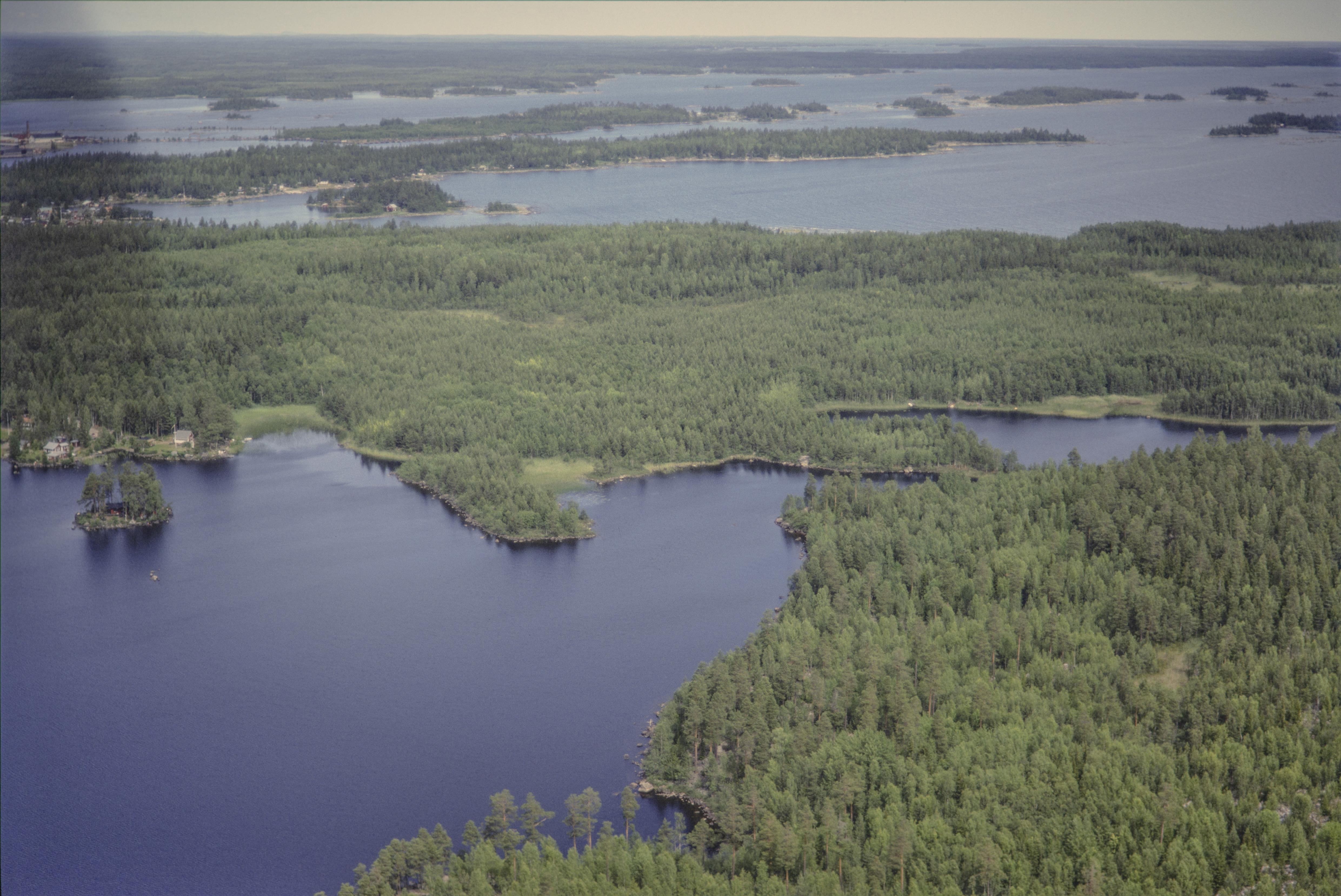 Beskrivning: Lindön i Hamrångefjärden. Till höger om bildens mitt spärranordning RAÄnr Hamrånge 140:1. Saltharsfjärden i bildens övre del. Bilden är tagen mot (väderstreck): N