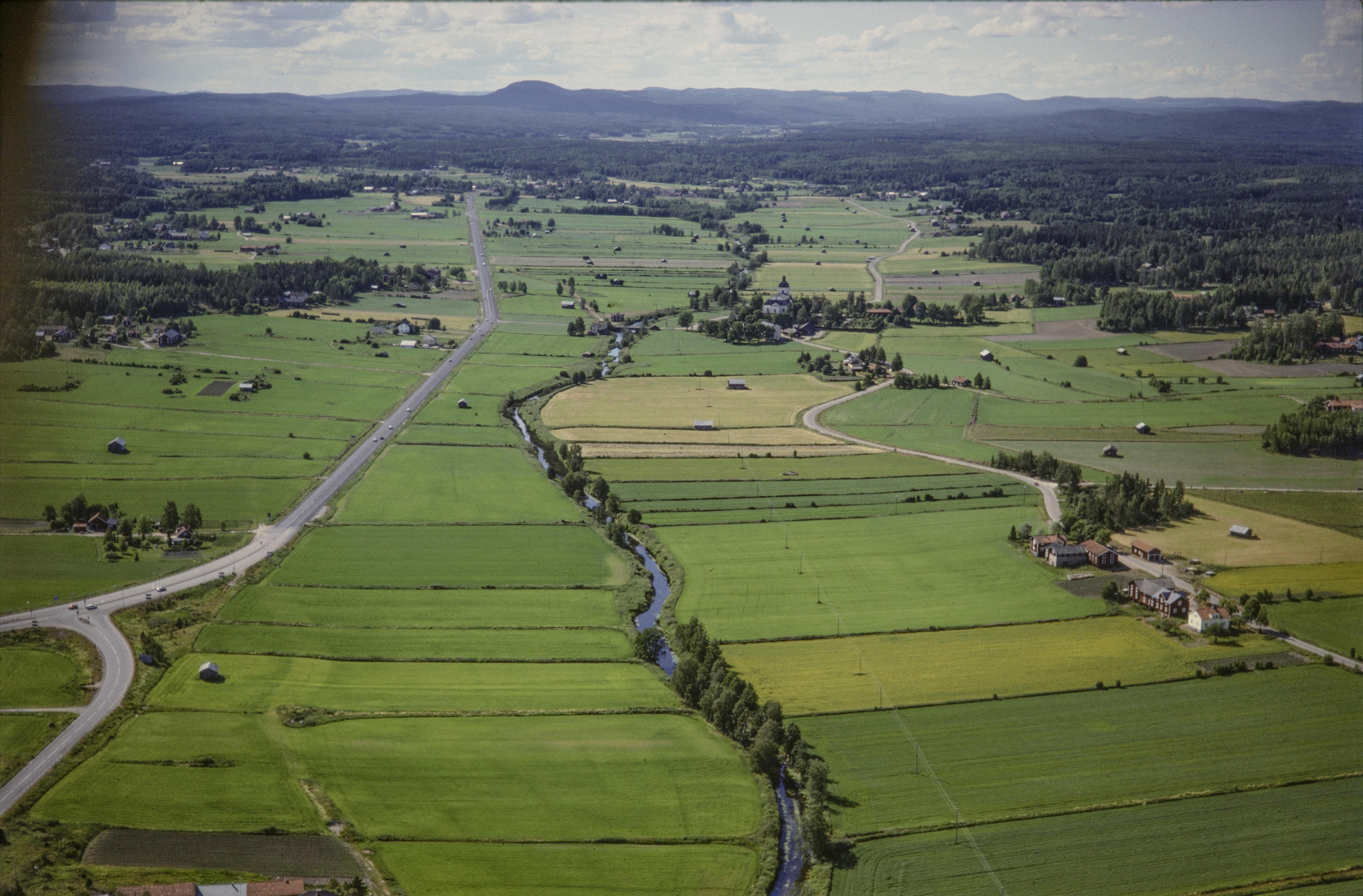 Beskrivning: Norrala kyrkby i Norralaåns dalgång. Norala kyrka vid bildens mitt. Vid kyrkan Staffans stupa, en plats med tradition RAÄnr Norrala 56:1. Bilden är tagen mot (väderstreck): VNV