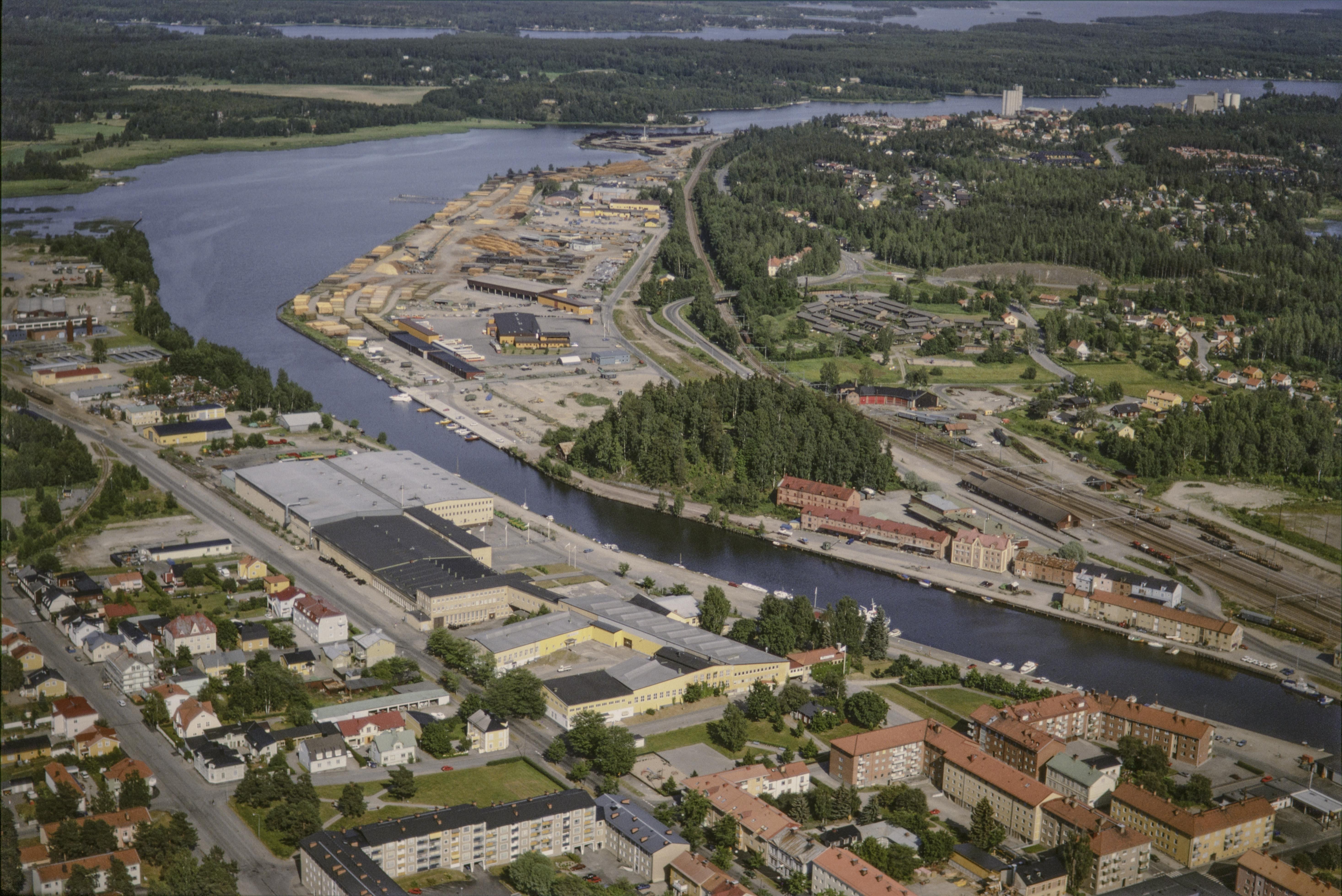 Beskrivning: Söderhamns tätort vid Söderhamnsfjärden. Runt trädklungan vid bildens mitt området Faxeholmen med bogruin Faxehus RAÄnr Söderhamn 4:1. Bilden är tagen mot (väderstreck): ONO