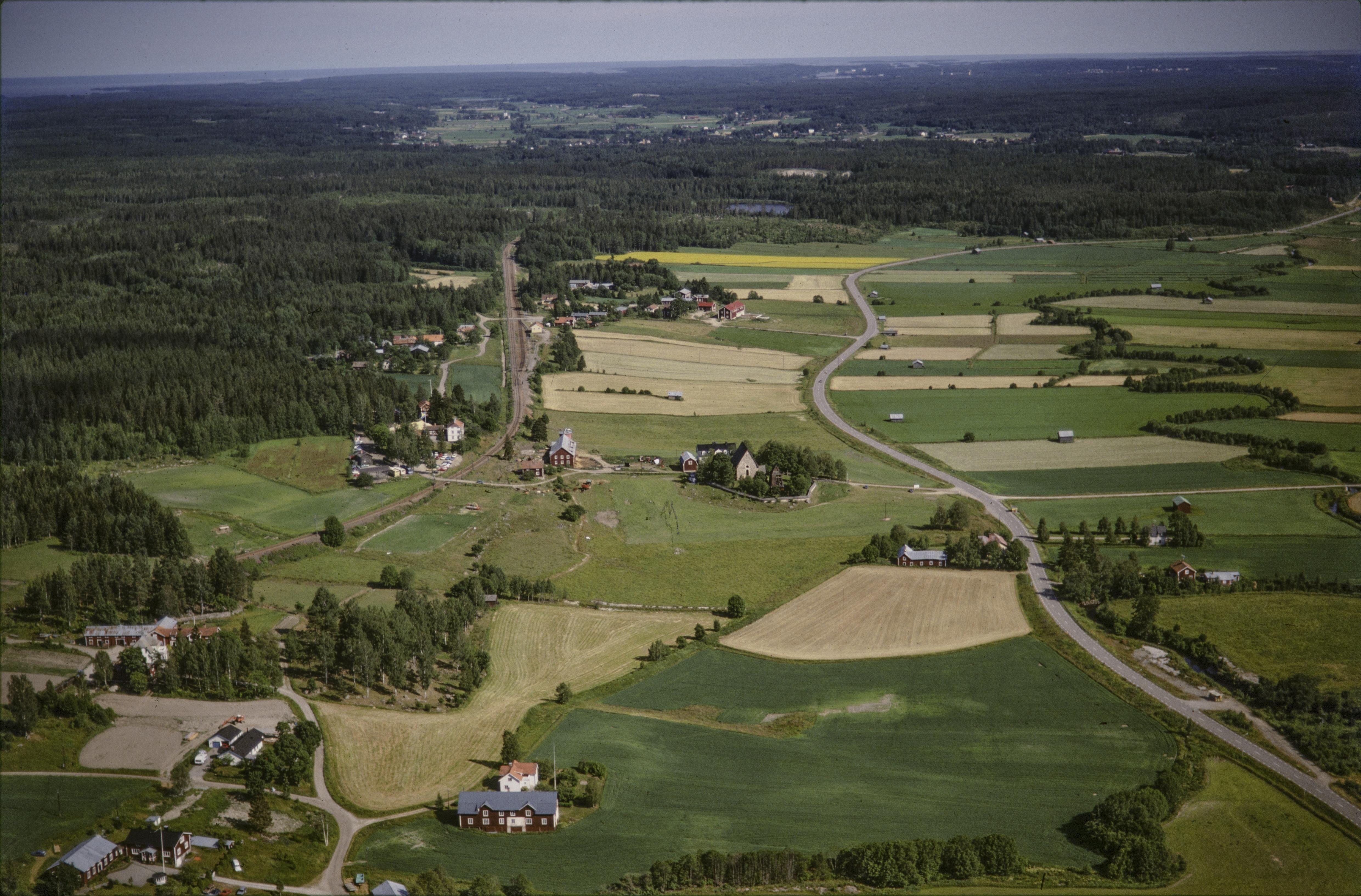Beskrivning: Trönö kyrkby i Trönöåns dalgång. Trönö gamla kyrka och begravningsplats RAÄnr Trönö 42:1 vid bildens mitt. Norrala socken över bildens mitt. Bilden är tagen mot (väderstreck): SO