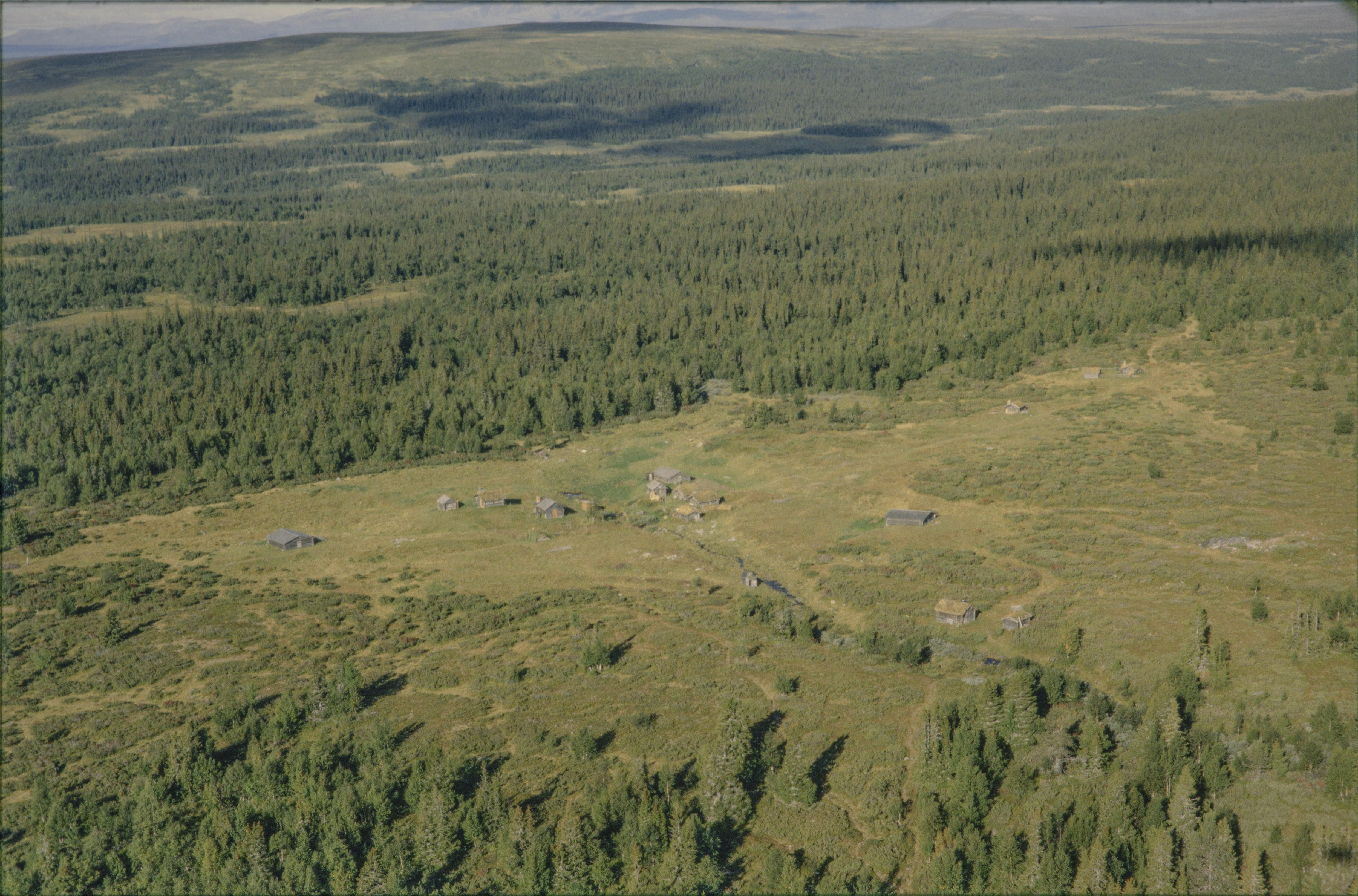 Beskrivning: Fäbodområdet Öster-Arådalen (skrivs även Östra Arådalen) i Ovikfjällens fäbodområde och Arådalens naturreservat. Bilden är tagen mot (väderstreck): NV