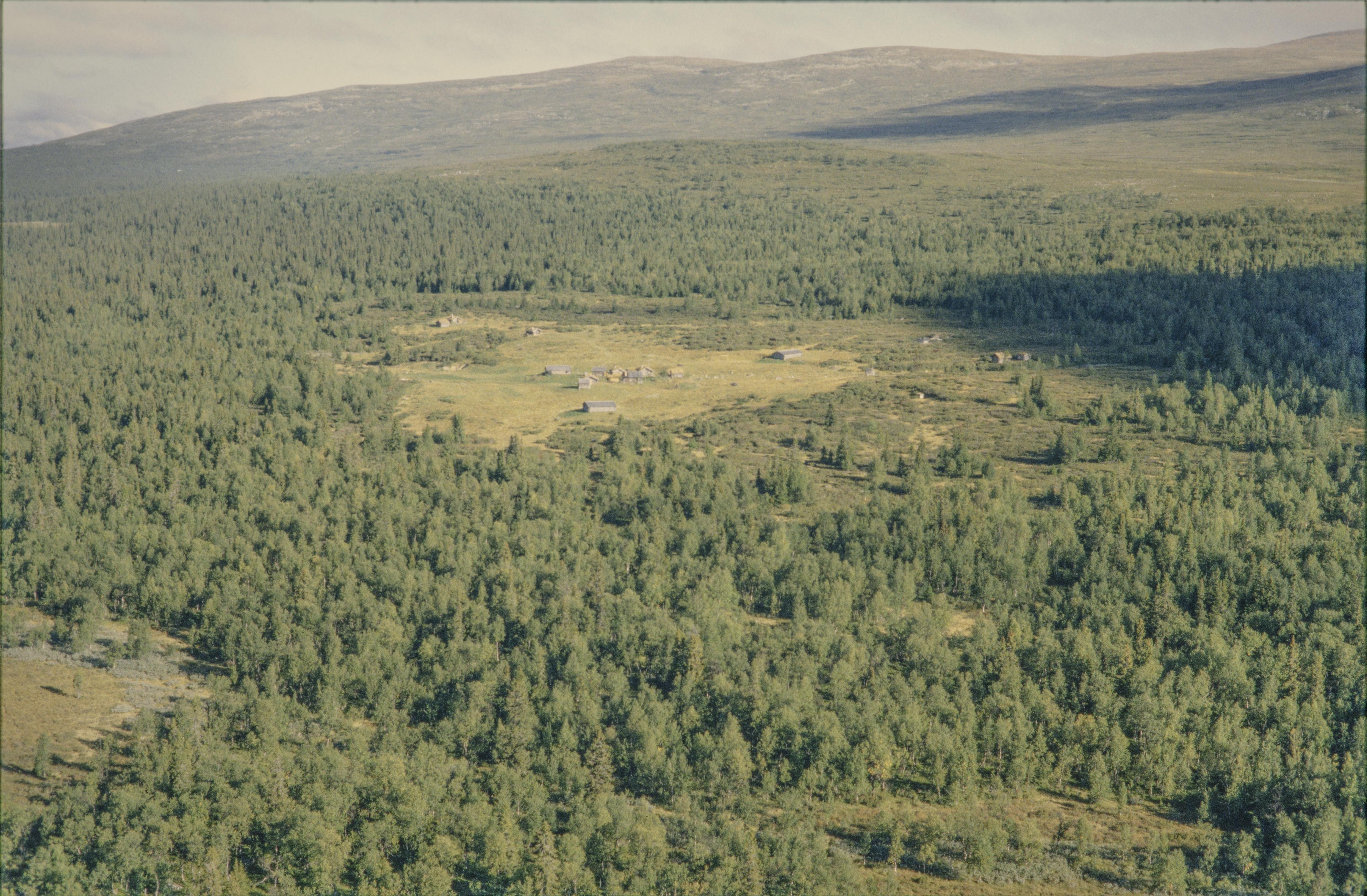 Beskrivning: Fäbodområdet Öster-Arådalen (skrivs även Östra Arådalen) i Ovikfjällens fäbodområde och Arådalens naturreservat. Bilden är tagen mot (väderstreck): N