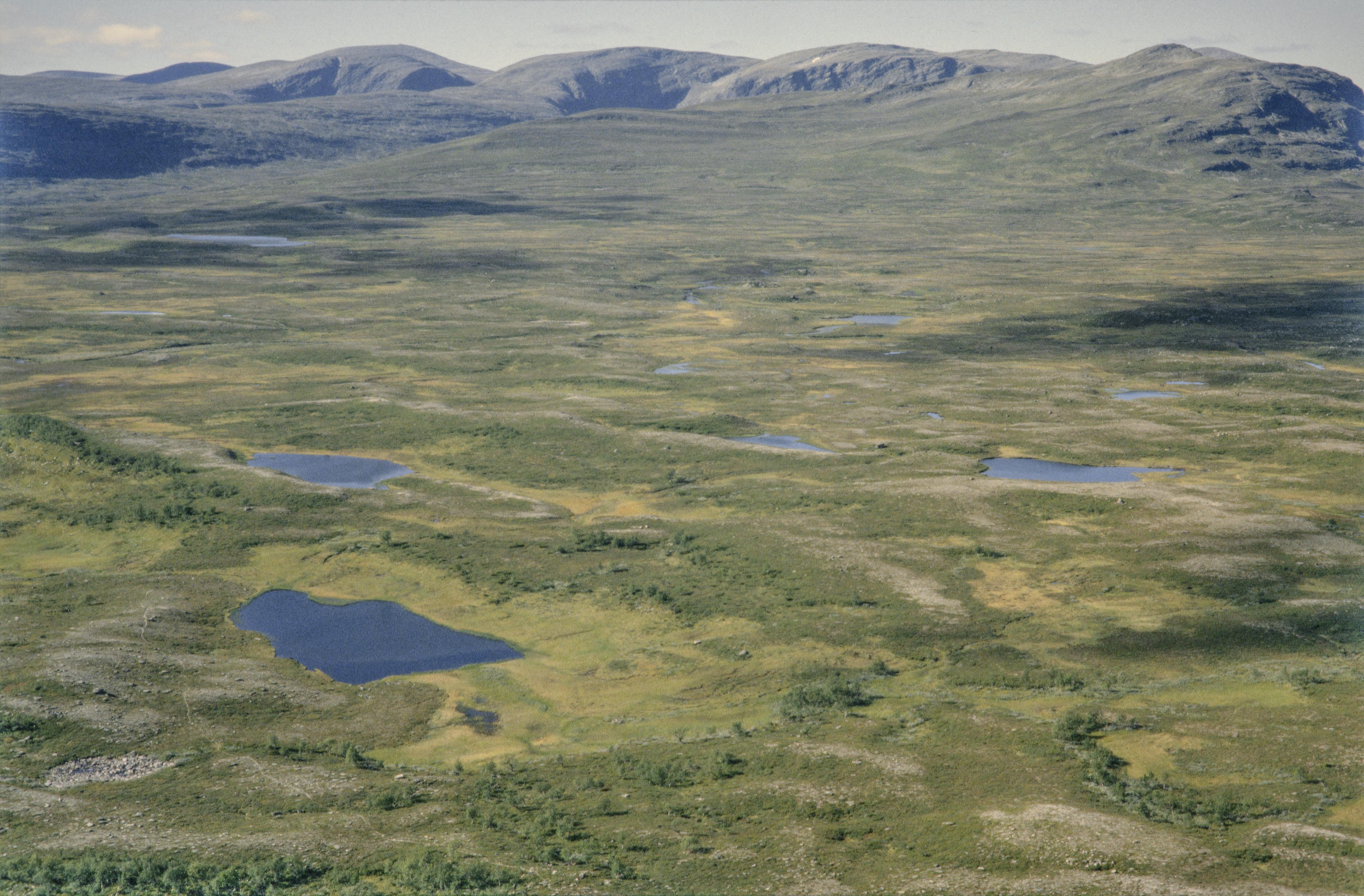 Beskrivning: Området Kroktjärnvallen / Bahrtja (Bartjan), ett samisk kulturmiljö. I bildens nedre del Kamptjärnarna på nordsidan av sjön Kroktjärnen, i västra delen av sameviste RAÄnr Oviken 265:1. Fjällområdet Lunndörrstjänarna i bildens övre del. Bilden är tagen mot (väderstreck): VNV
