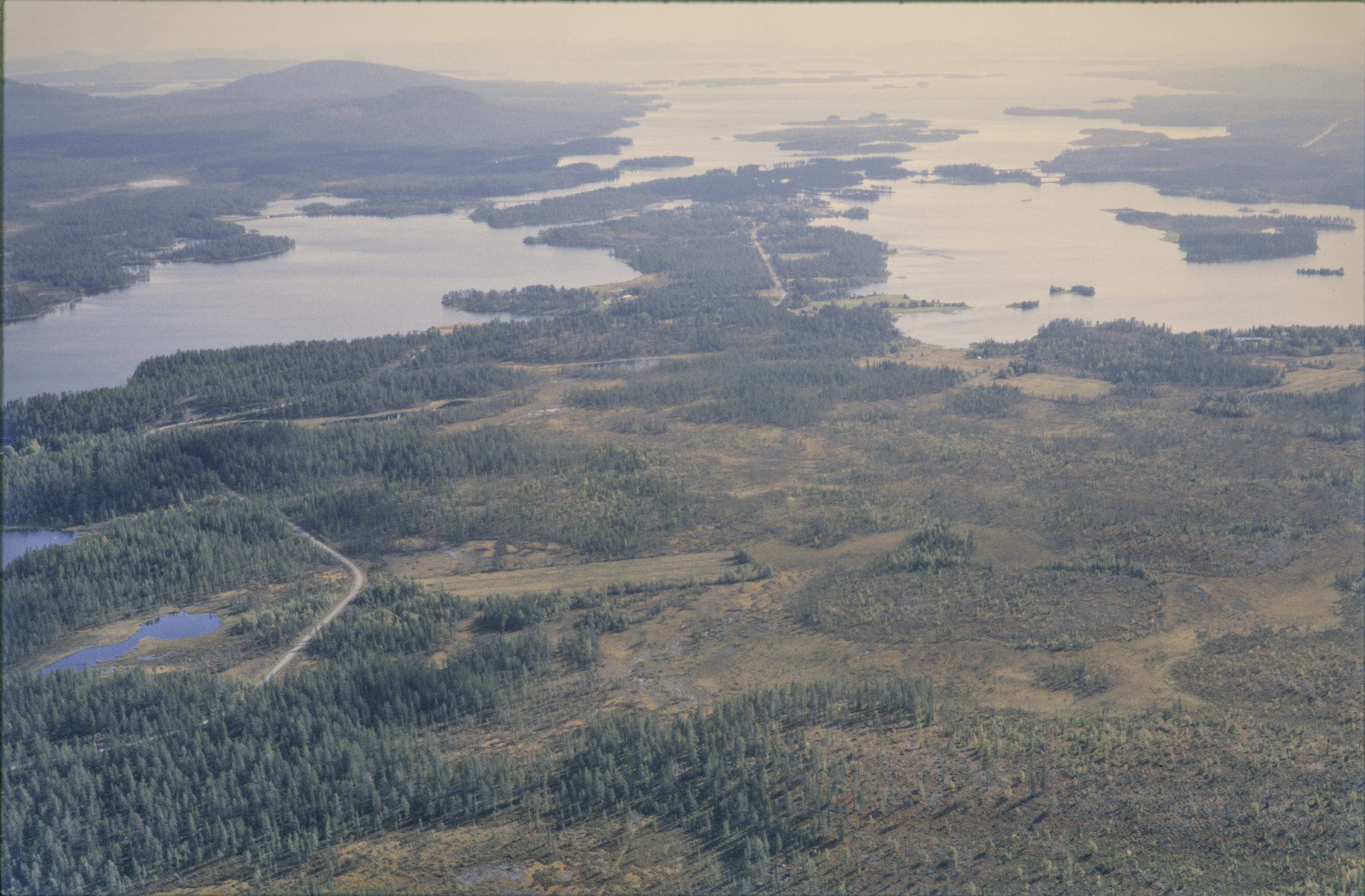 Beskrivning: Fornlämnings- och bostadsområde i och vid sjön Välbma (Veälbmá), söder om sjön Uddjaure (Uvvjáge). I bildens övre del områdena Kasker, Hemholmen, Mellanström (Vakssamsuoloj), m.fl. Vid bildens mitt boplats RAÄnr Arjeplog 549:1, 1602:1, 1624, m.m. Bilden är tagen mot (väderstreck): S