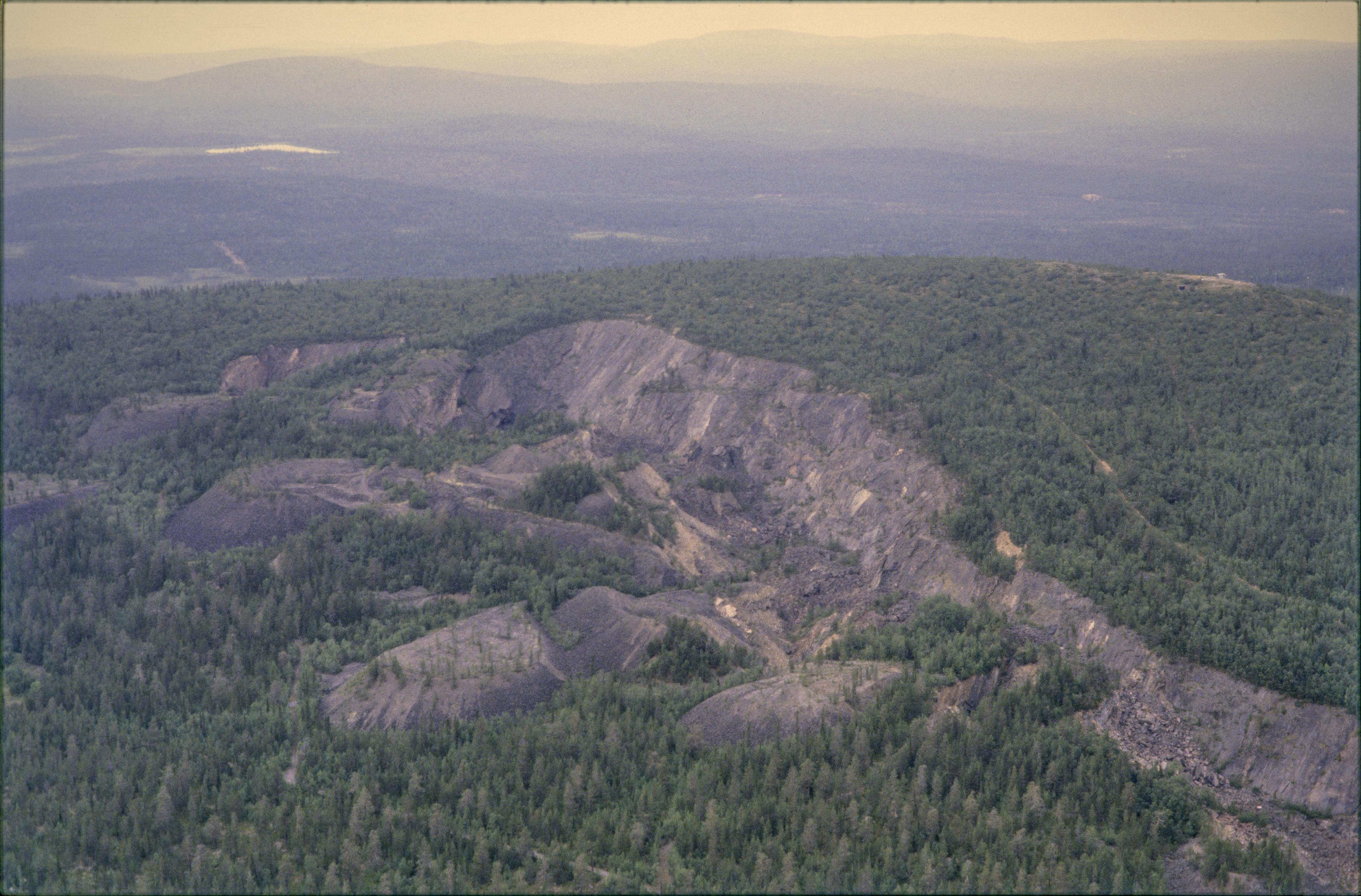 Beskrivning: Dagbrottet Kungsryggen i östra delen av tätorten Malmberget (Malmivaara / Málmmavárre), väster om Koskullskulle tätort och Linaälven (Lijnáädno). Bilden är tagen mot (väderstreck): Ö