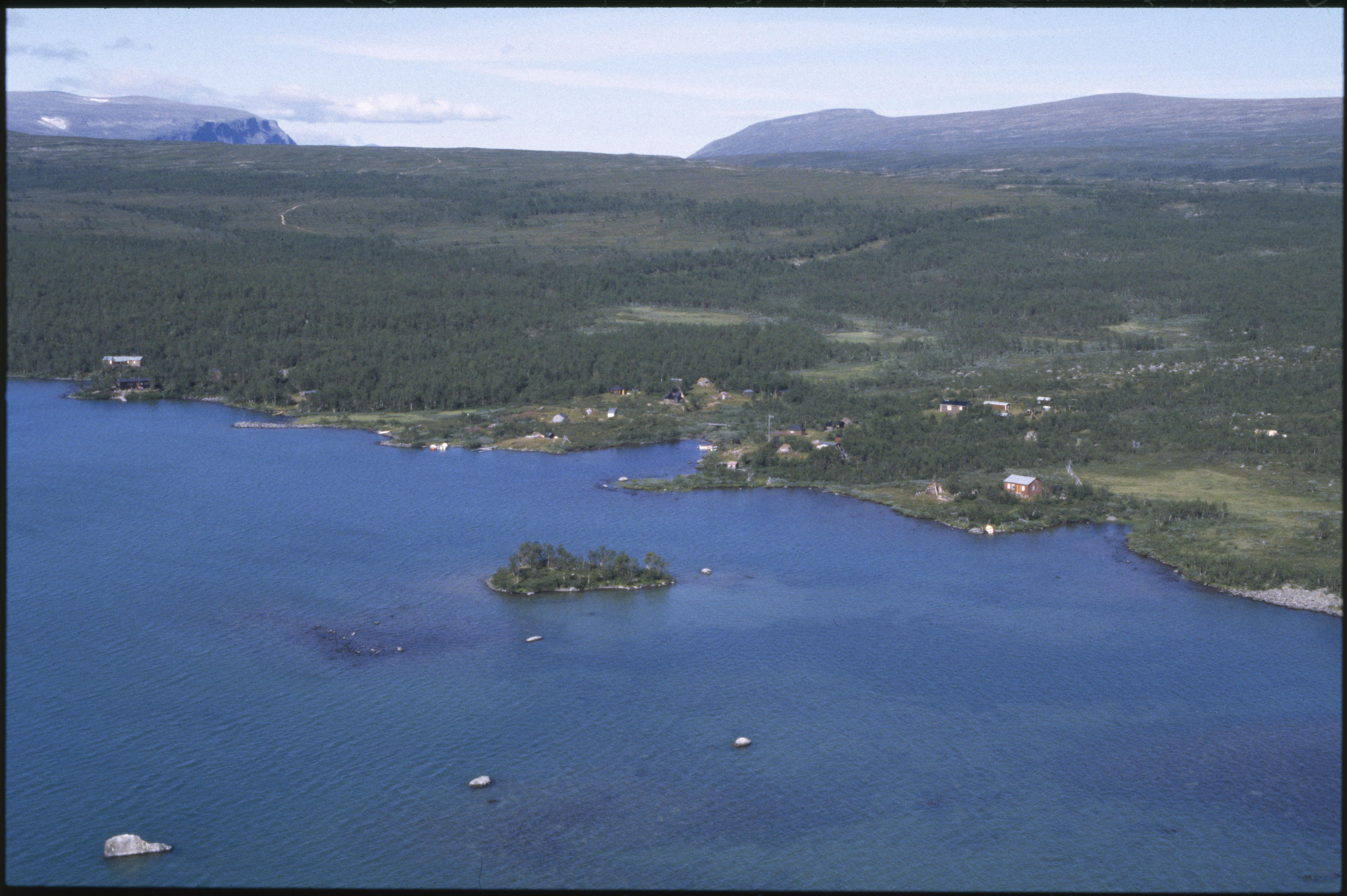 Beskrivning: Sitojaurestugorna i Vaggevare (Vaggevaratj / Vággevárásj) sameviste i sydöstra ändan av sjön Sitojaure (Sijddojávrre). Vid bildens mitt boplats RAÄnr Jokkmokk 371:1, 372:1 och 374:1. Området ingår i Ultevis fjällurskogs naturreservat. Bilden är tagen mot (väderstreck): N