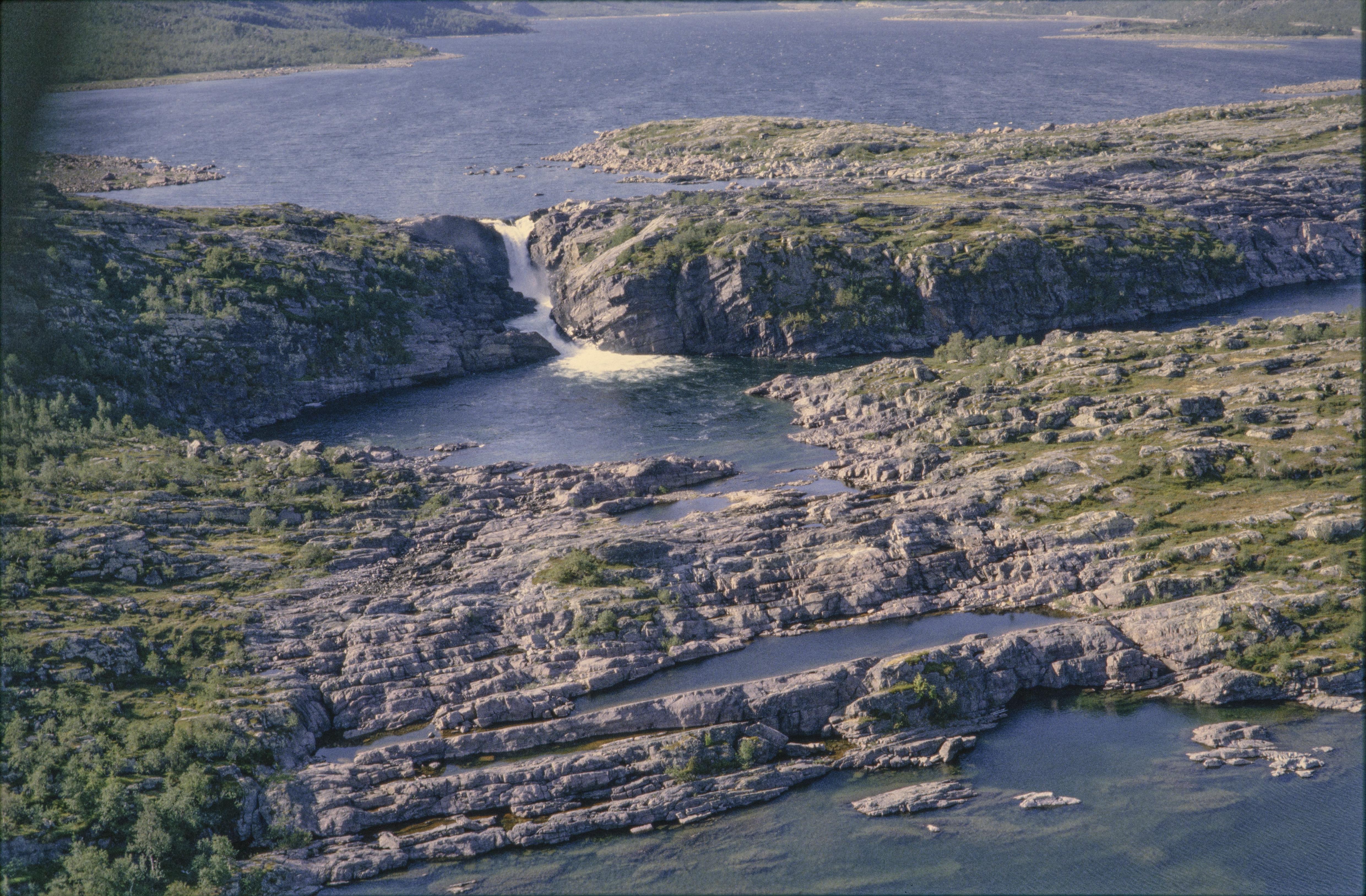 Beskrivning: Stora Sjöfallet (Stuor Muorkke) i Stora Luleälven (Stuor Julevädno) på västsidan av Vietas kraftverk i Gällivare socken. Älven markerar gränsen mellan Jokkmokk (i bildens nedre och vänstra del). och Gällivare (i bildens övre del). I bildens nedre del förvaringsanläggning RAÄnr Jokkmokk 256:1. Området ingår i Stora Sjöfallets nationalpark (Stuor Muorkke) och världsarvet Laponia. Bilden är tagen mot (väderstreck): VNV